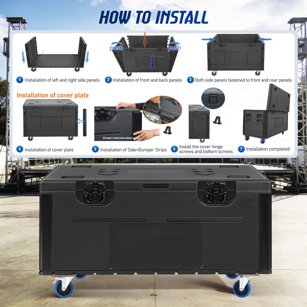 1X-2X Cable Trunk Road Case with Casters Heavy Duty Stackable Rolling Road Case
