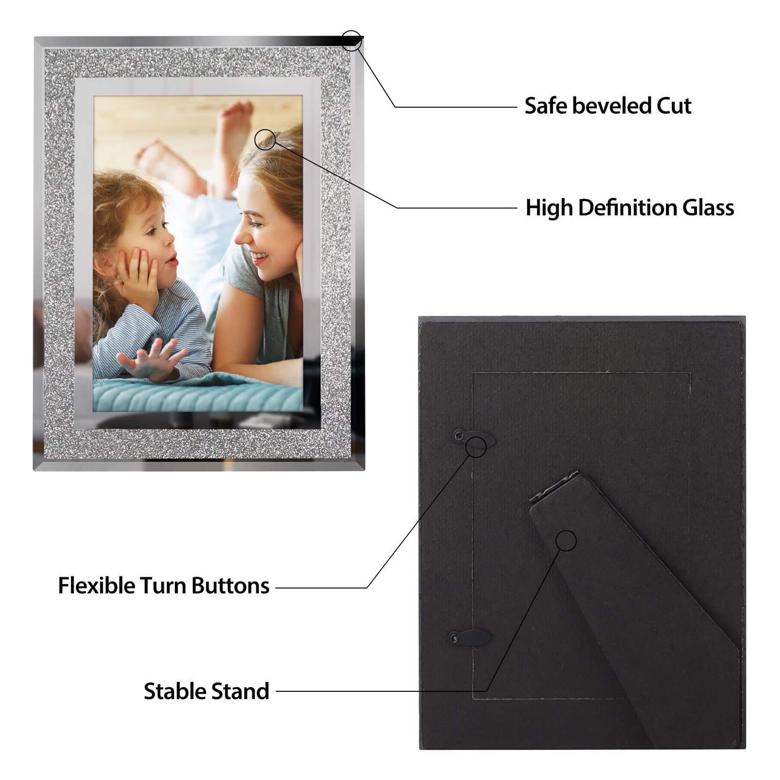 4 Pack 5x7 Sparkle Glass Picture Frame, Glitter Edge Photo Frames for Tableto...