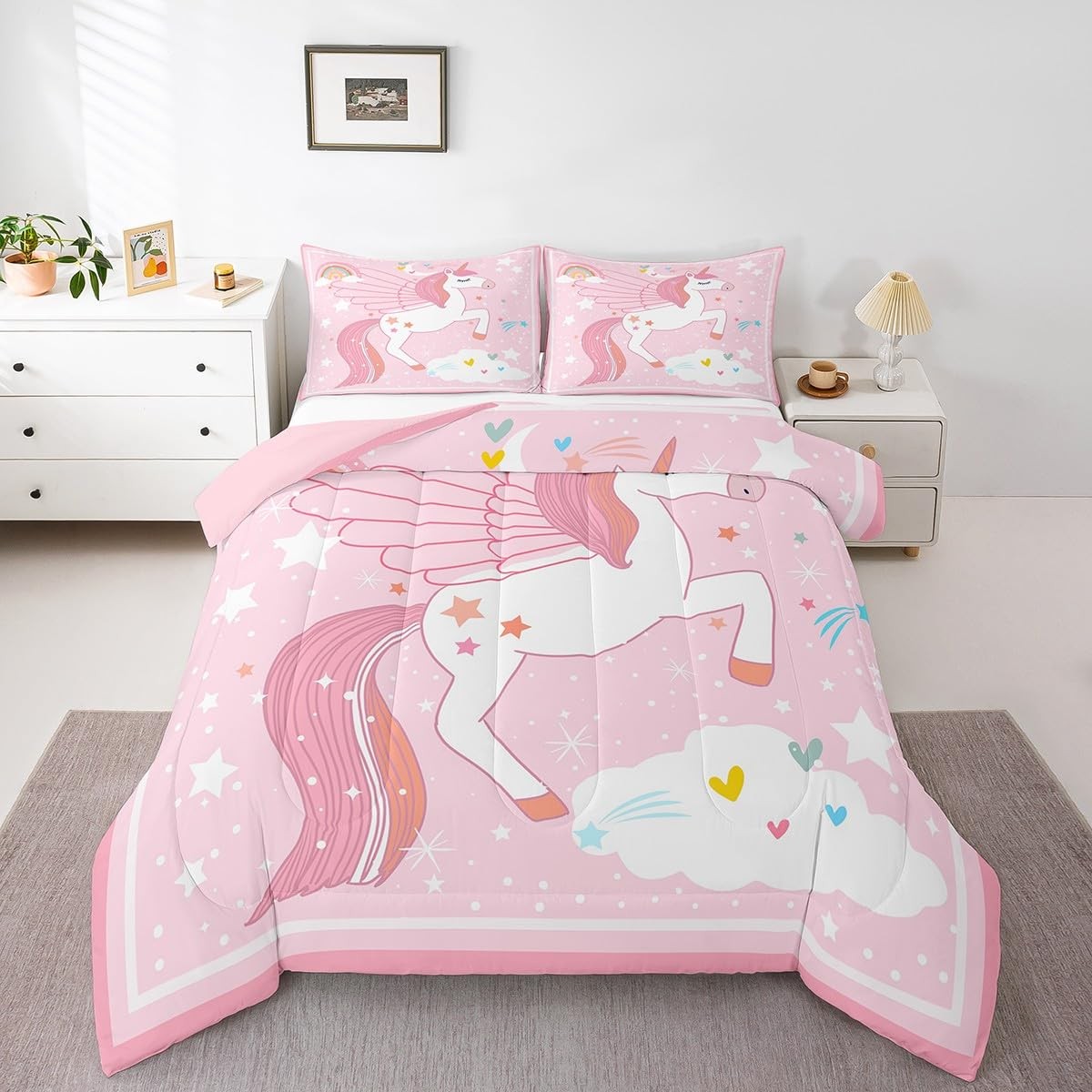 Pink Unicorn Bedding Set Queen Size for Kids Girls Cute Rainbow Comforter Set...