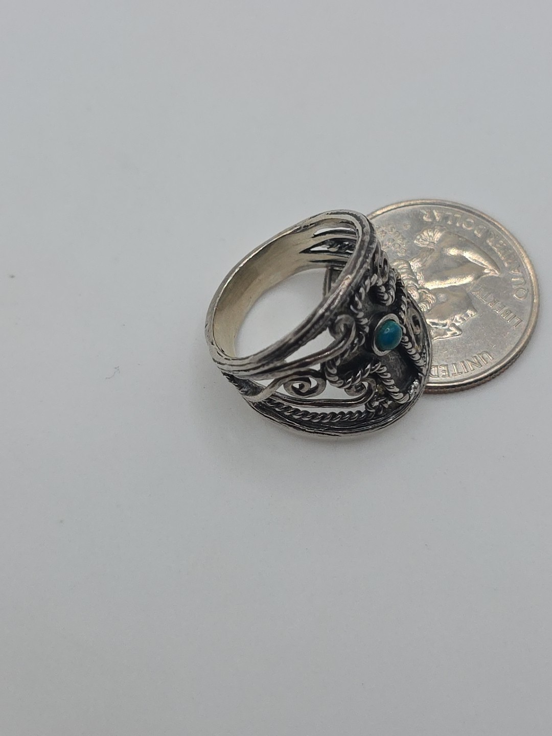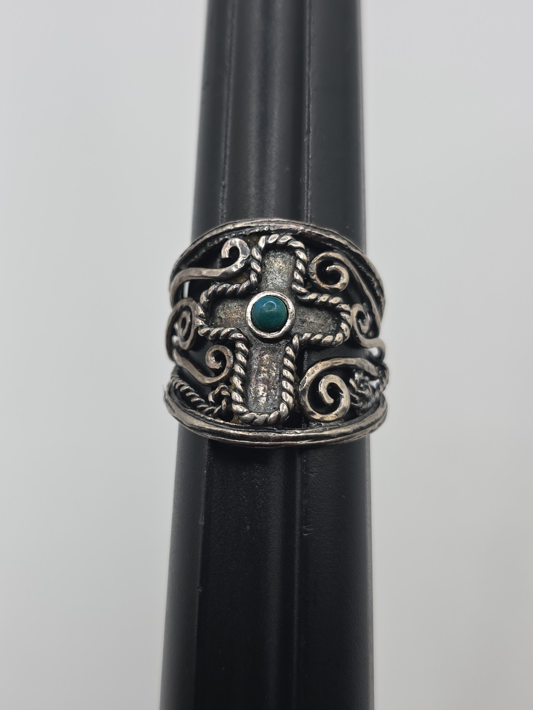 как выглядит Israel PZ Sterling Silver 925 Turquoise Ceoss Scrolls Ring Size 8.5 фото