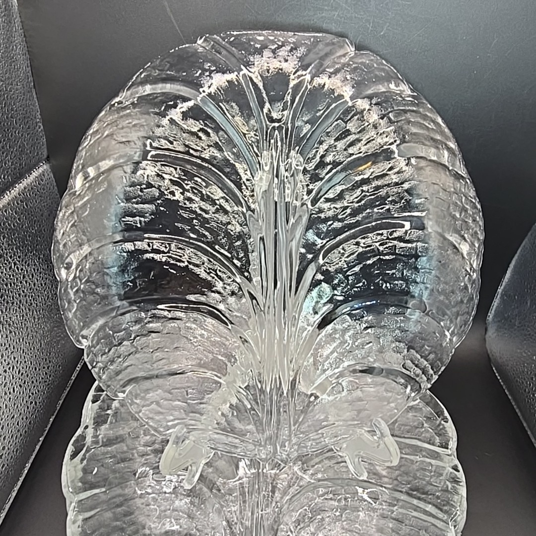 как выглядит Set Of 4 Orrefors Sweden Crystal Glass Eden Leaf Pattern 10 In Dinner Plates фото