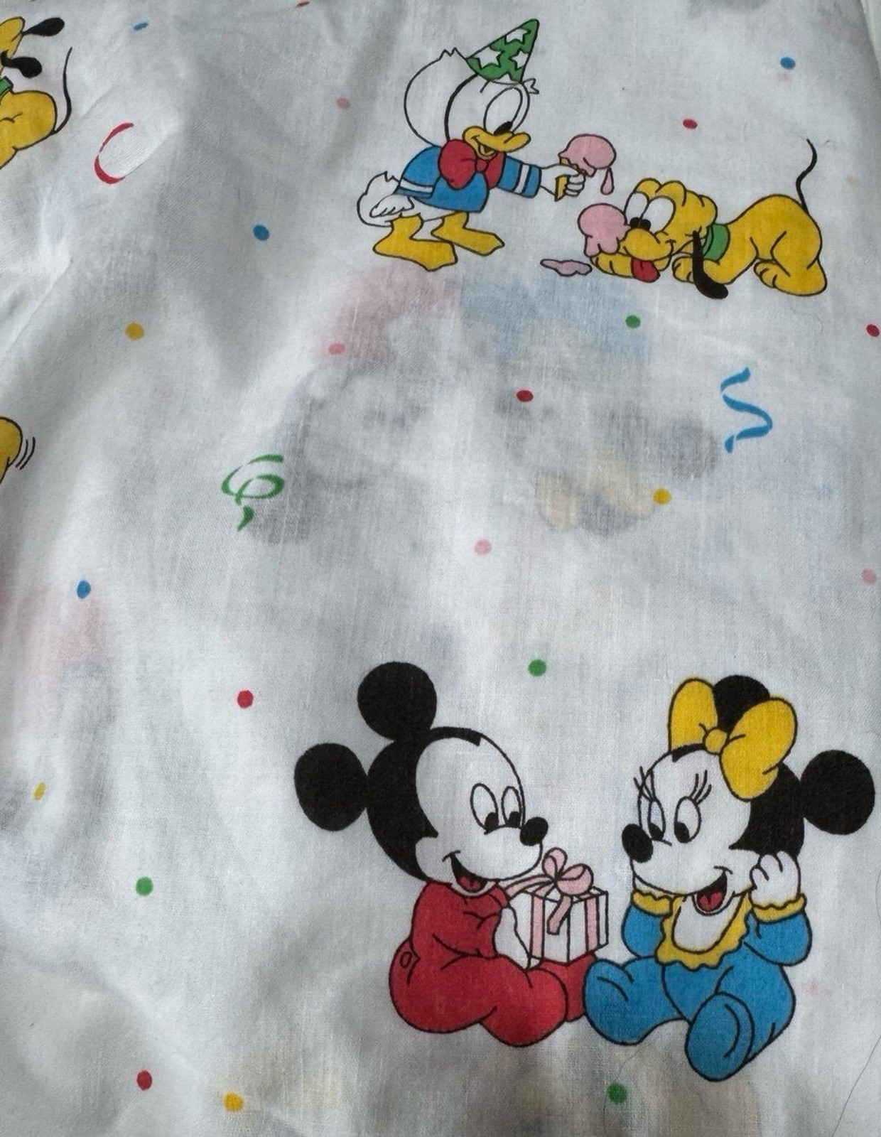 как выглядит Vintage 1984 Dundee Disney 2 Fitted Crib Sheet Baby Mickey Mouse Friends USA фото