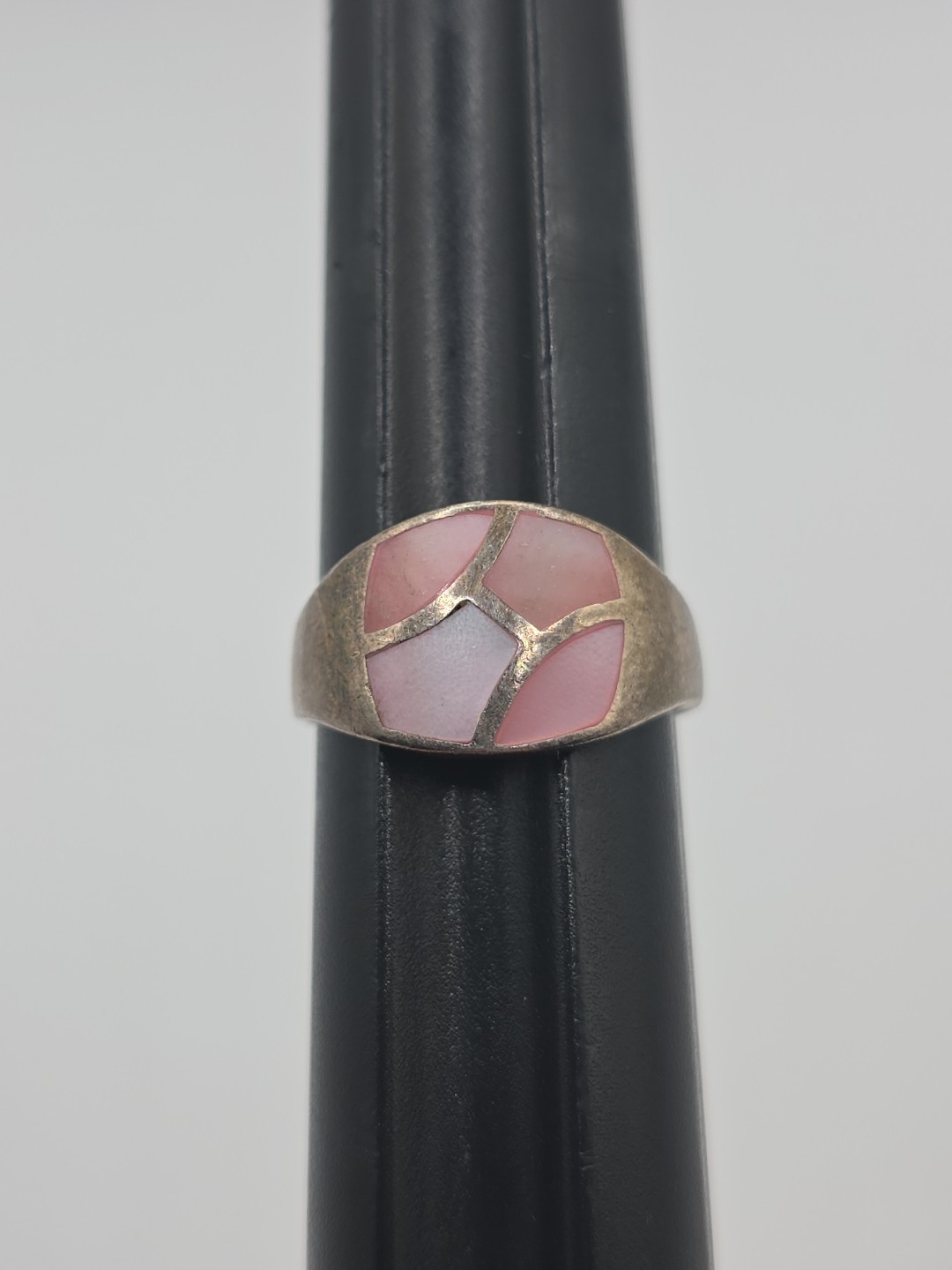 Vintage Sterling Silver 925 NF Pink Abalone Ring Size 8