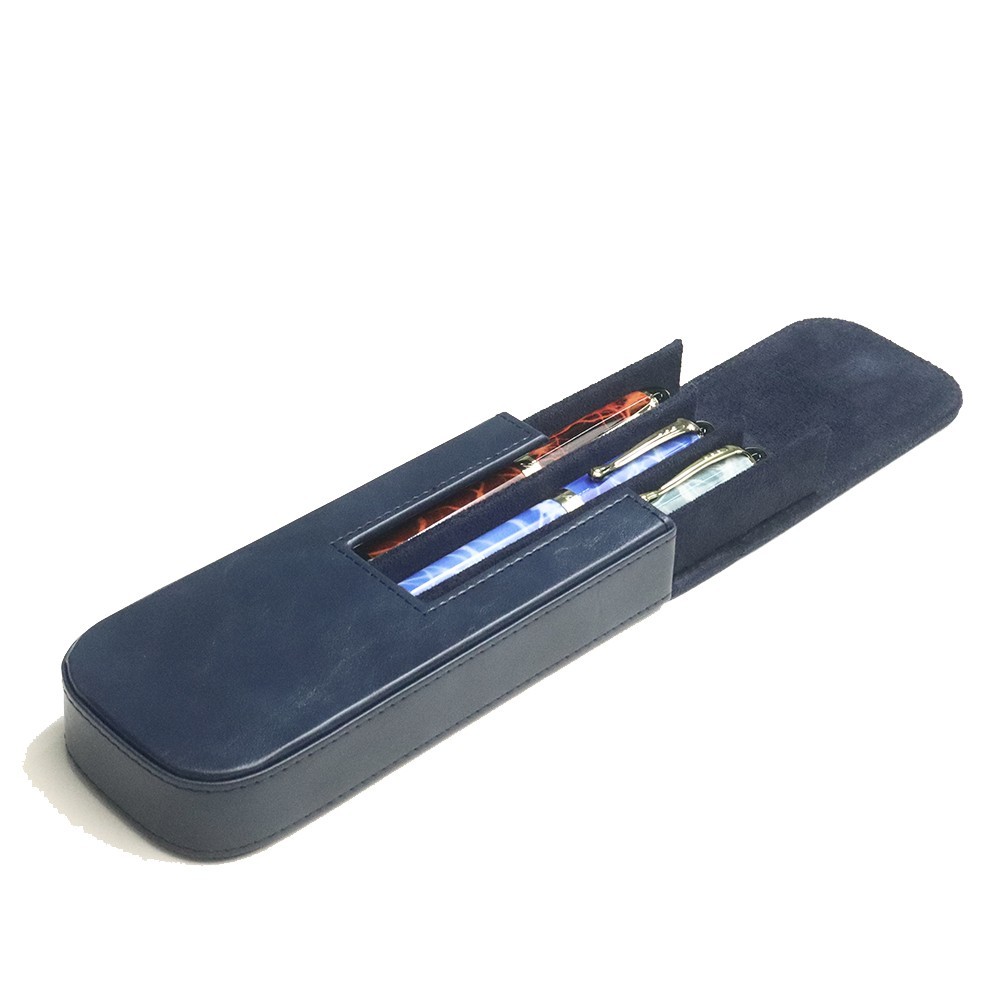 Blue Leather 3 Slots Hard Fountain Pen Case Storage Box Removable Pen Tray