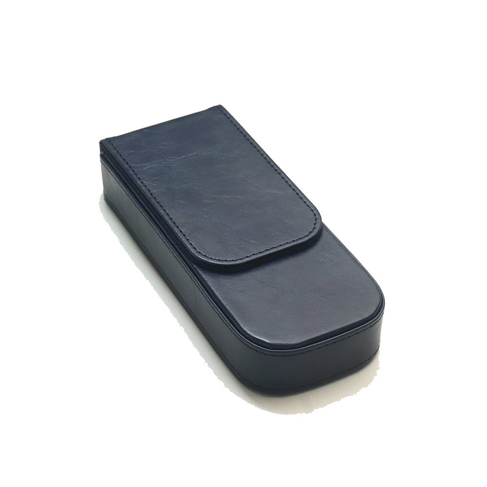 • Blue Leather 3 Slots Hard Fountain Pen Case Storage Box Removable Pen Tray