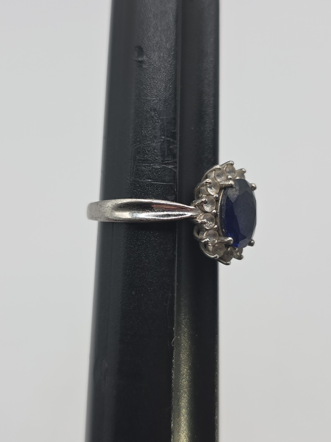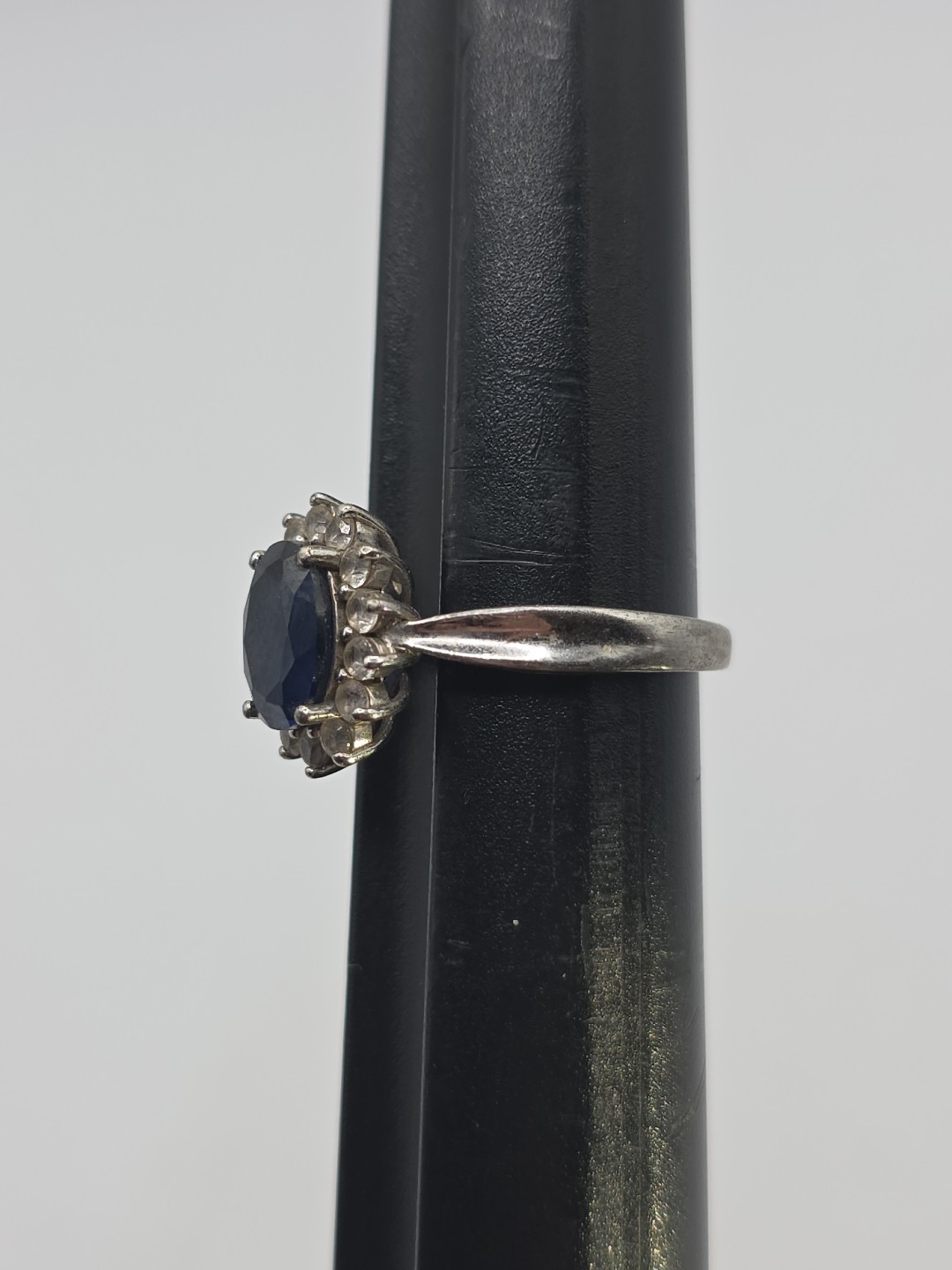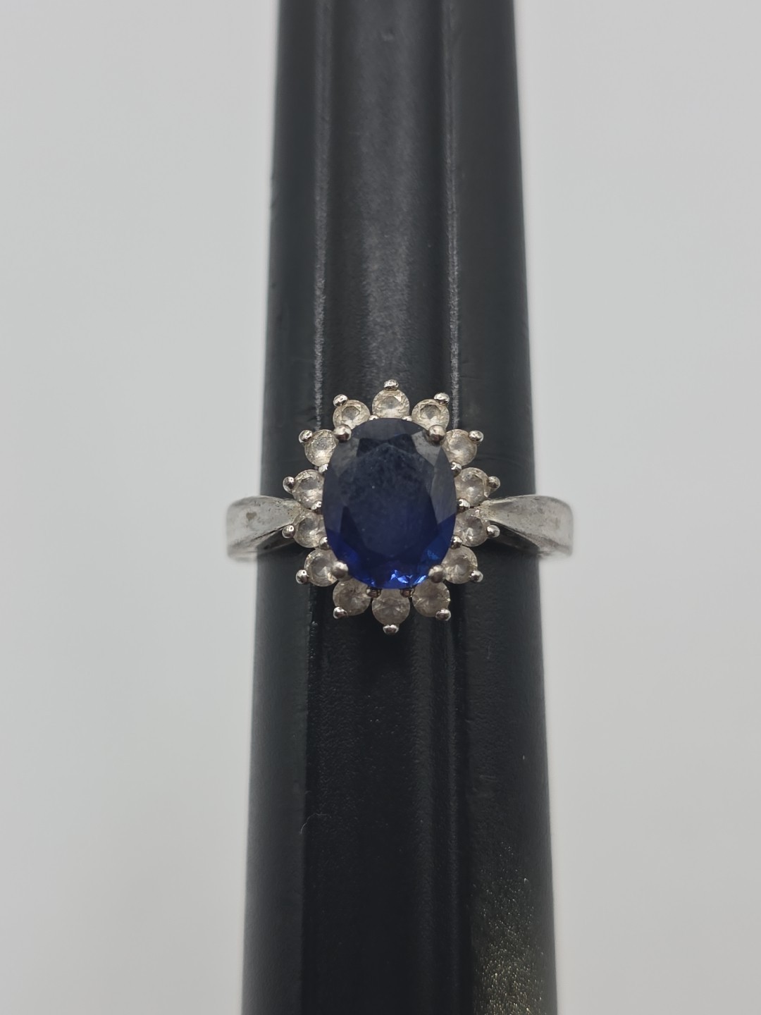 Lab Blue Sapphire Halo Sterling Silver 925 AU Ring Size 7