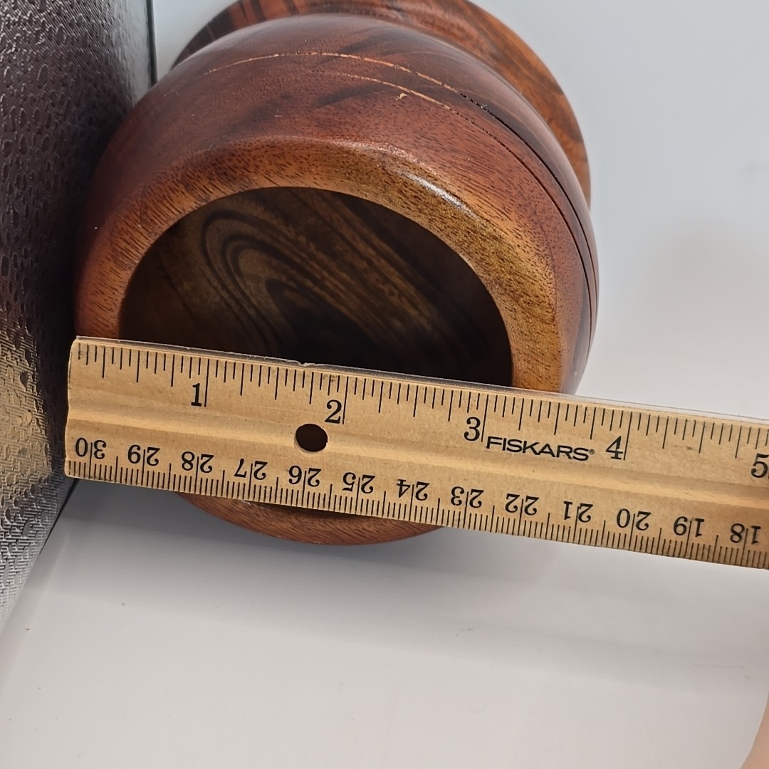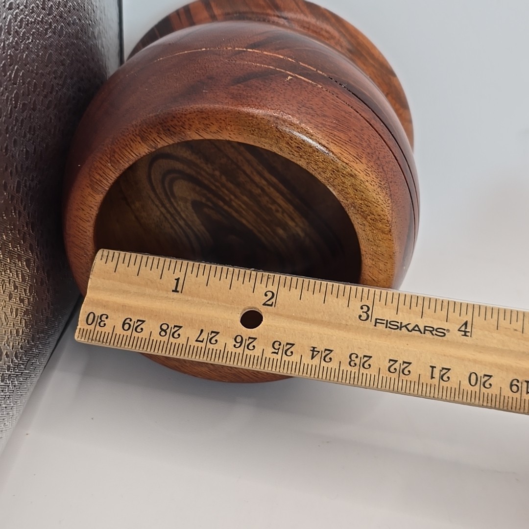 как выглядит Vintage Turned Wooden Box With Lid Trinket Box Round 3.25 In Tall фото