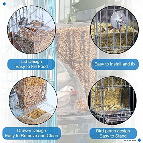 Automatic Bird Cage Feeders 2-Pack No Mess Acrylic Seed Dispenser for Parrots