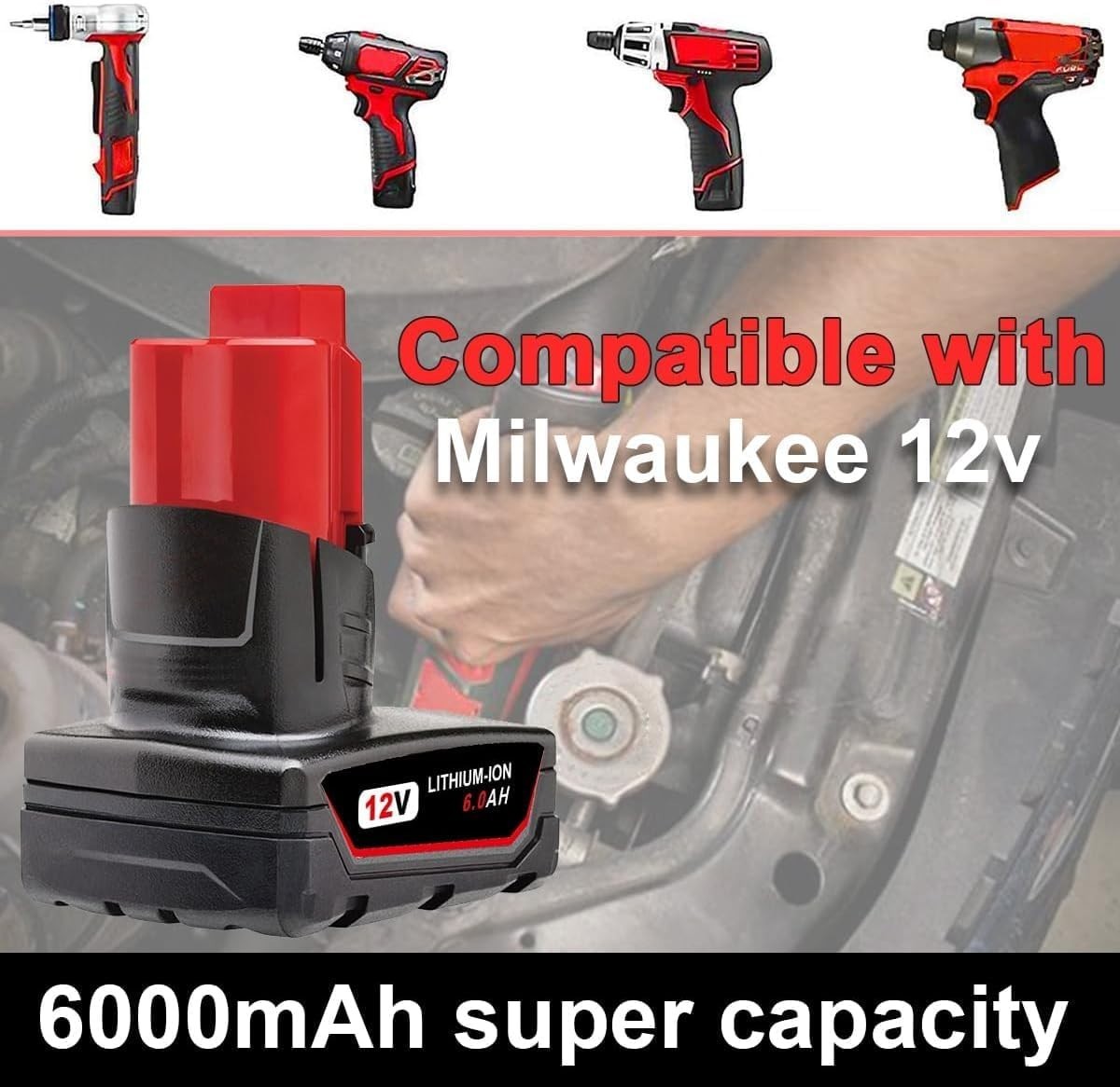 4-Pack 12V 6.0Ah Lithium-ion Battery for Milwaukee M-12 12V Extende 48-11-2411
