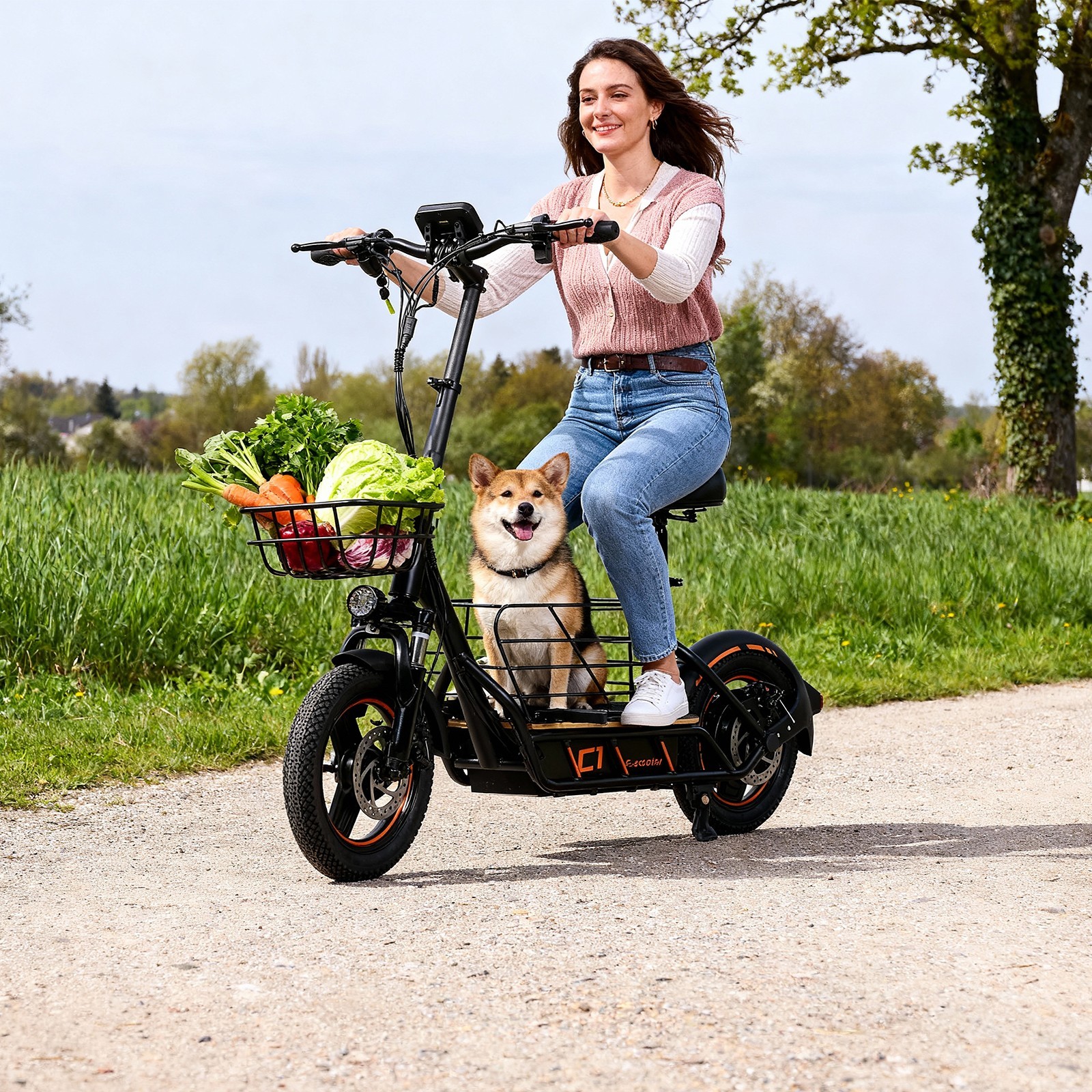 14'' Folding Adults Electric Scooter, 22Mph Commuter E-Scooter W/ Seat Baskets