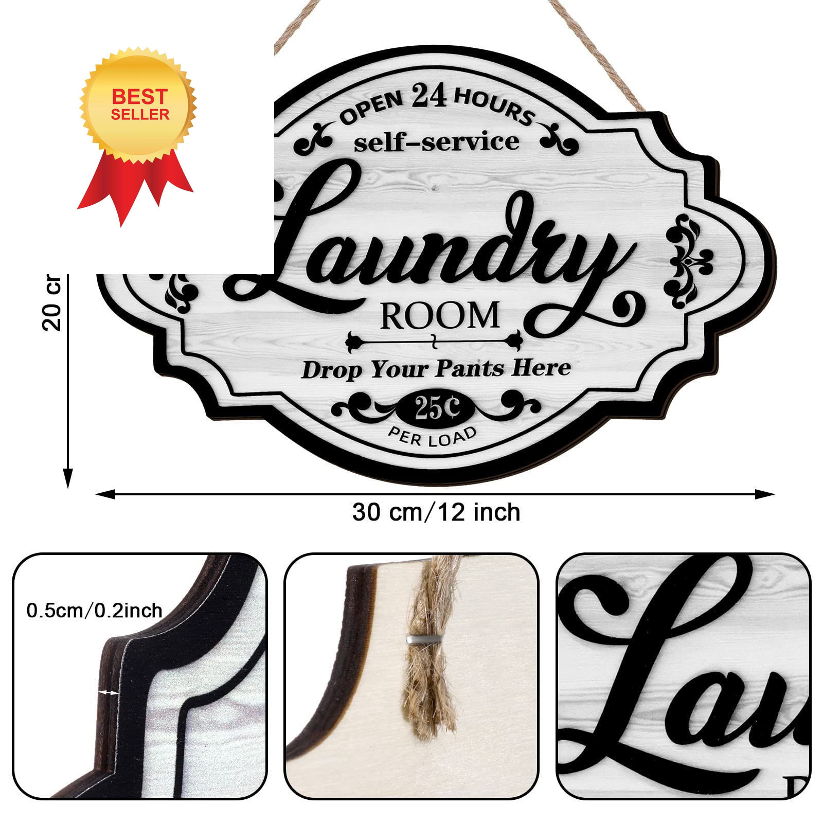 Jetec Vintage Wood Laundry Room Decor Hanging Wall Sign 12 x 8 inches, White