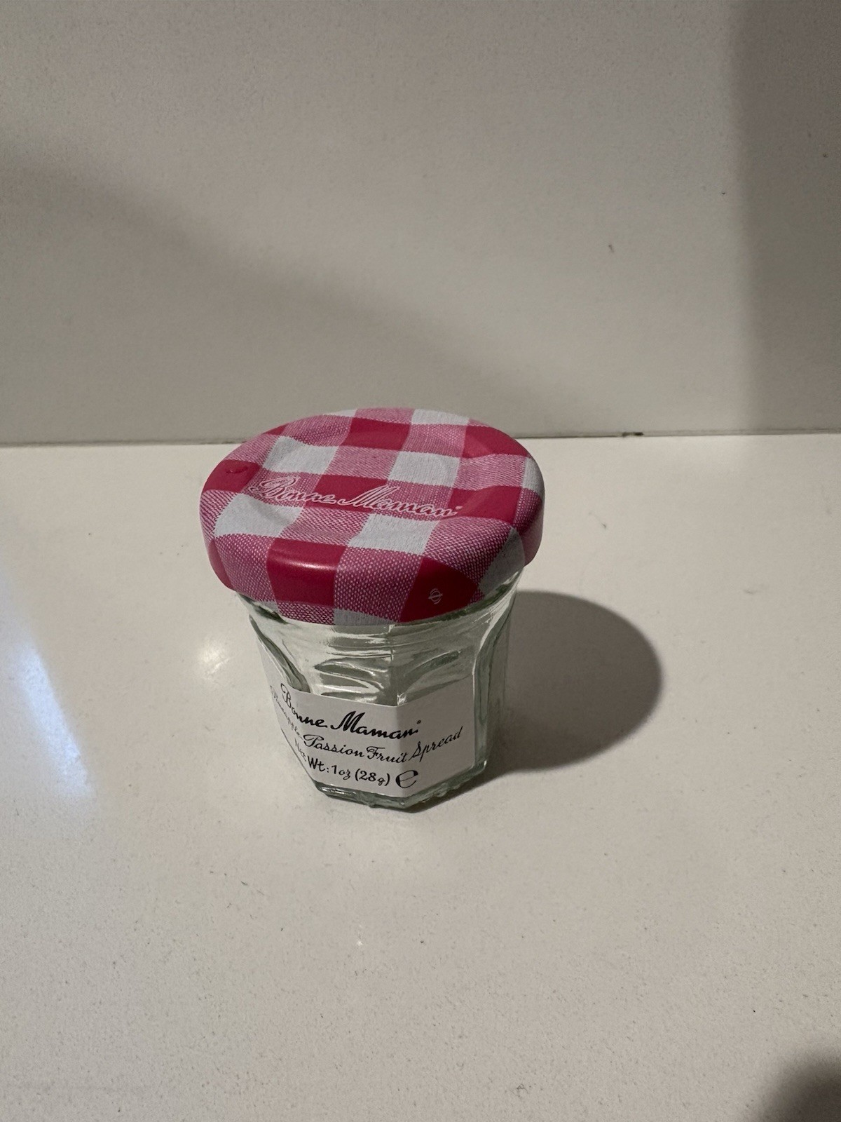 как выглядит Bonne Maman Mini Jar 1 oz Empty Glass with Red Or Pink Gingham Lid фото