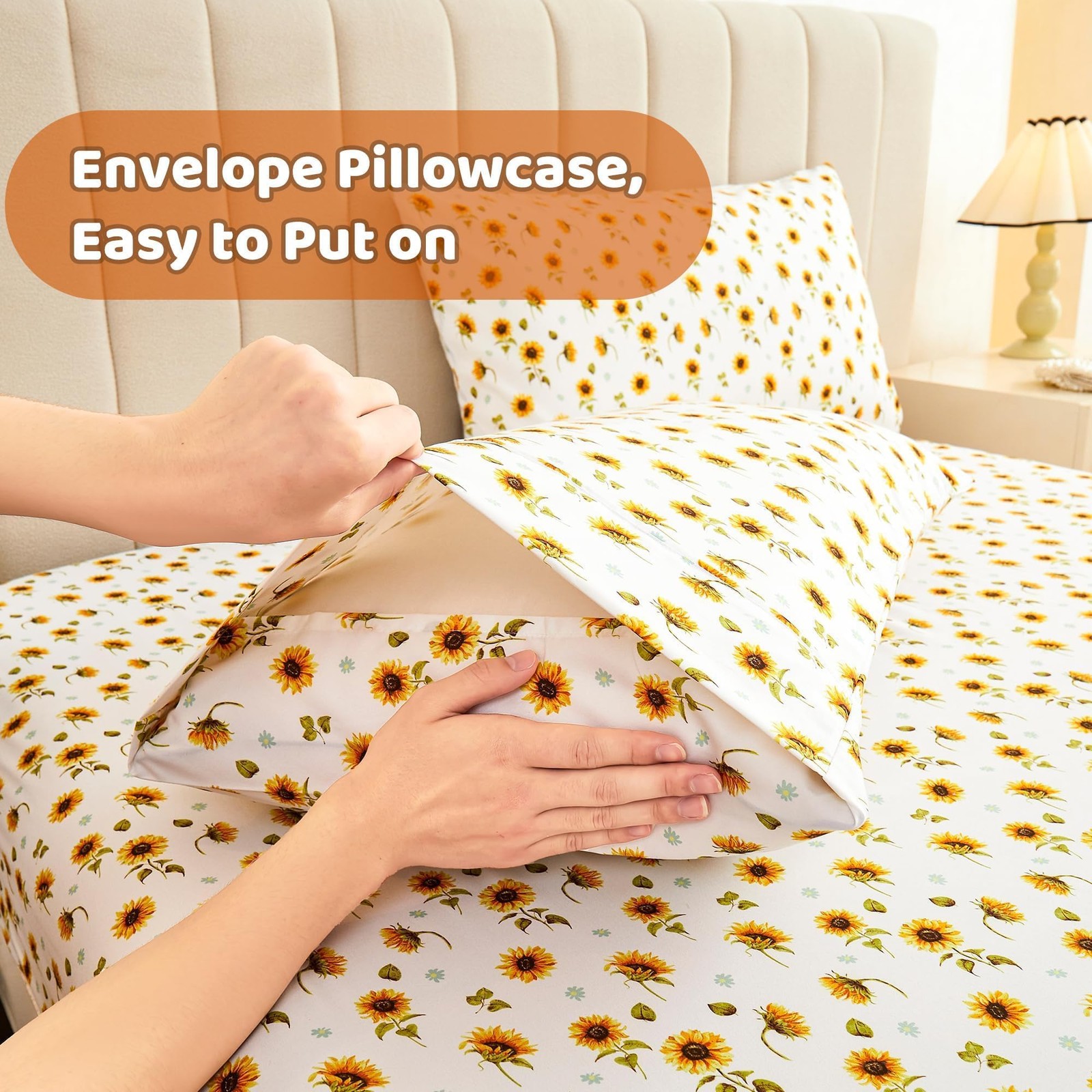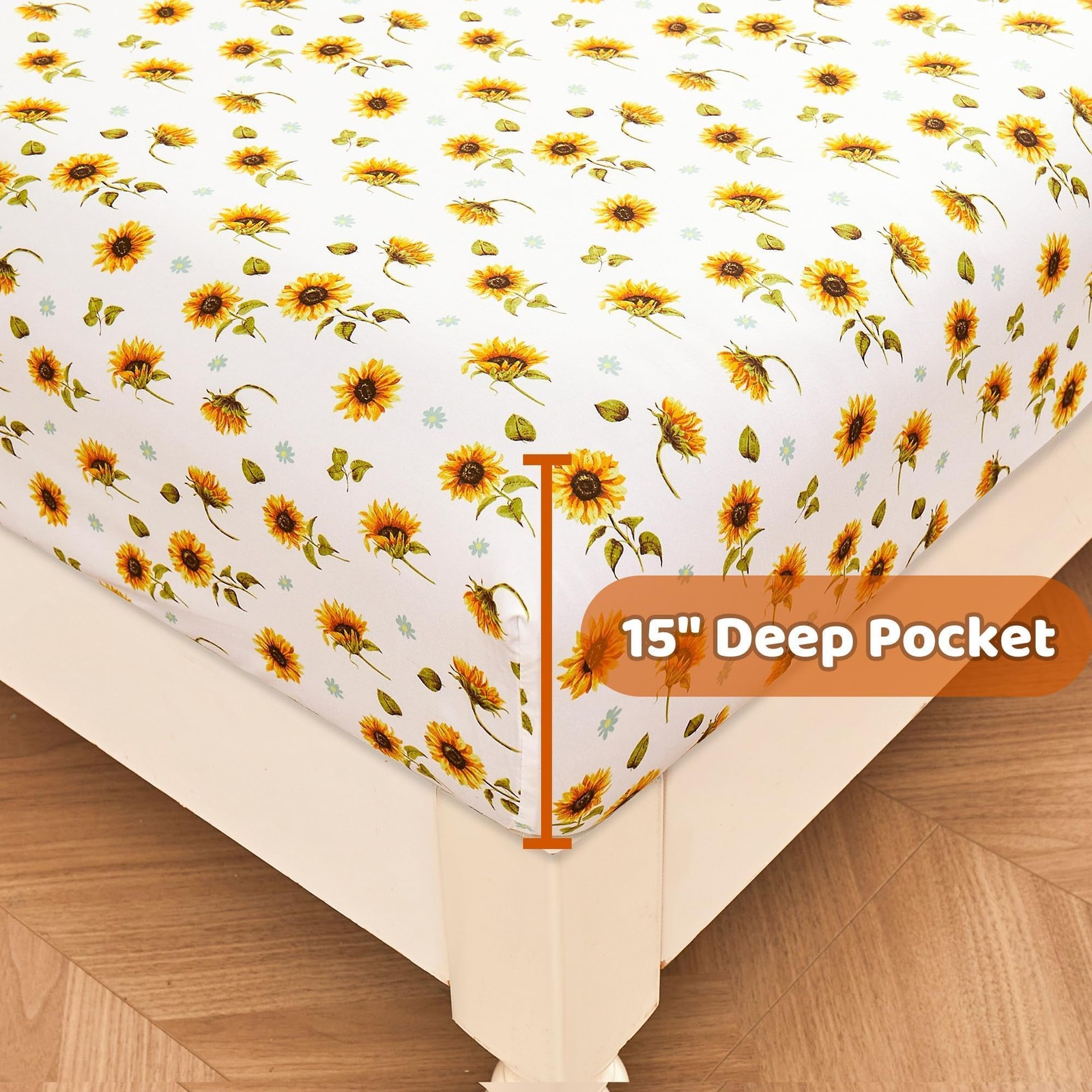 Floral Sheet Set Full, Sunflower Printed Bed Sheets Double, Brushed Microfibe...