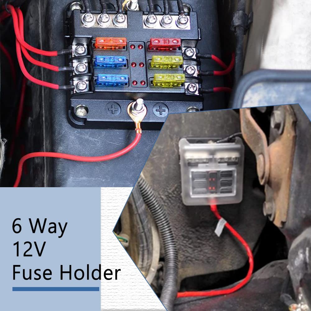 12V Fuse Block, Waterproof 6 Way Fuse Box with LED Indicator for 12V/24V Auto