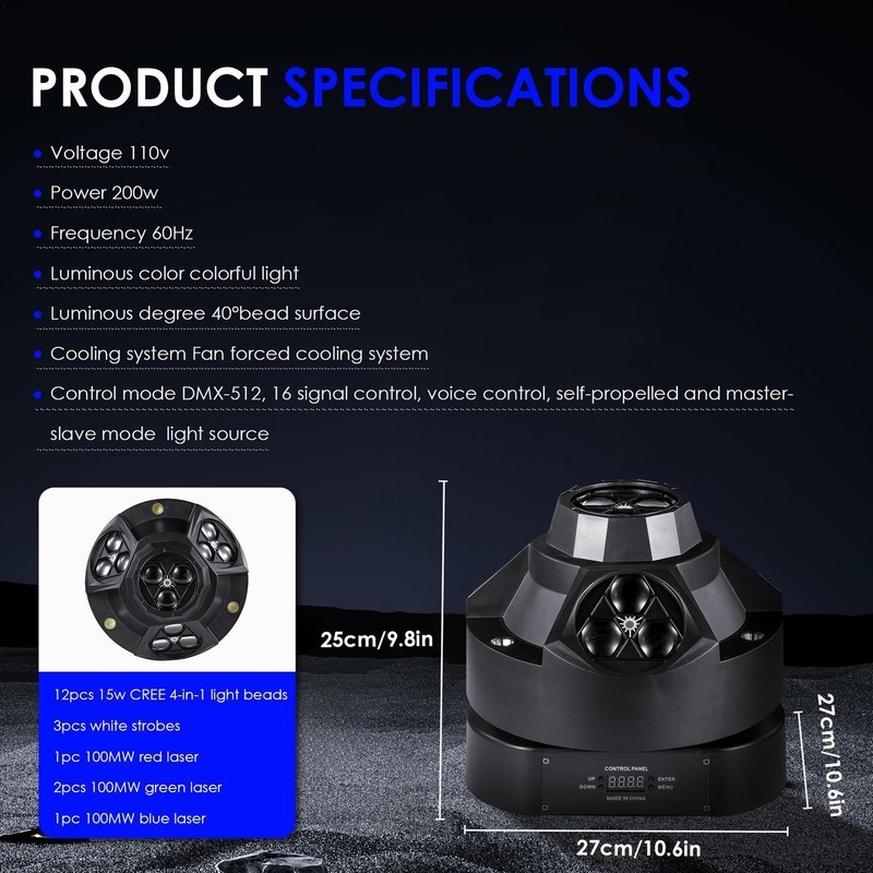 как выглядит 4 IN 1 RGBW DJ Light w/ Laser Effect 3 Arms Moving Head Light DMX Stage Light US фото