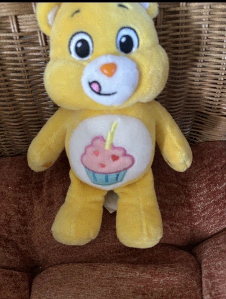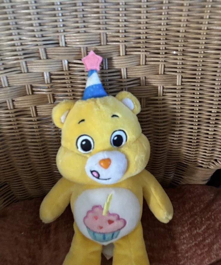 • Care Bears Yellow Birthday Bear Stuffed Animal Plush Cupcake Party Hat 12 Cute