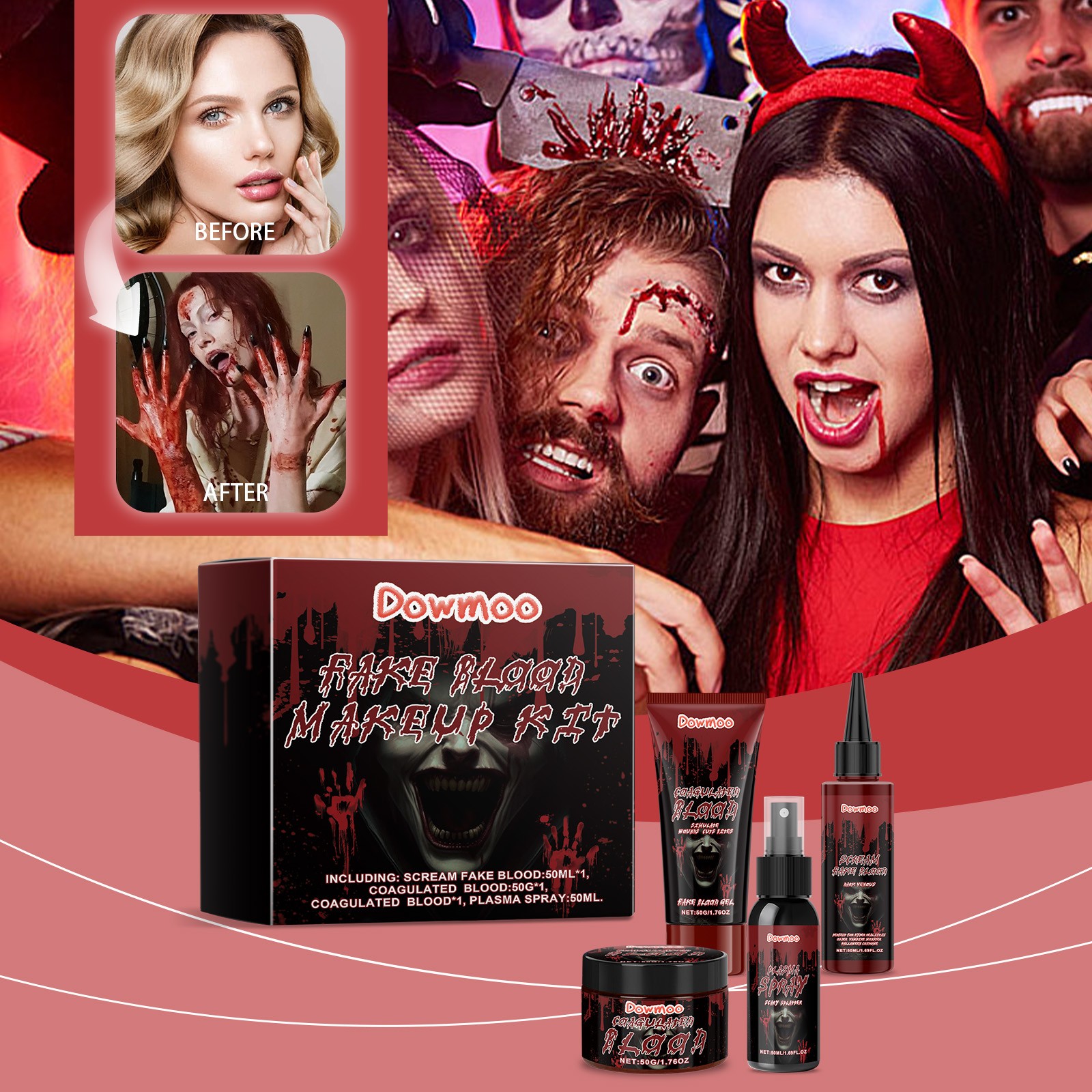 Halloween Fake Blood Makeup Kit - Professional FX Costume Party Scary Effects