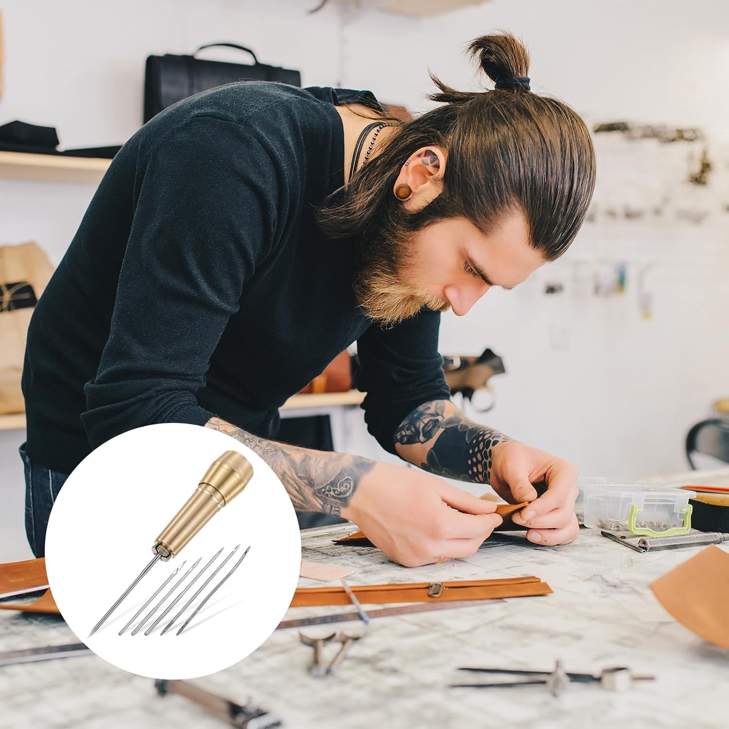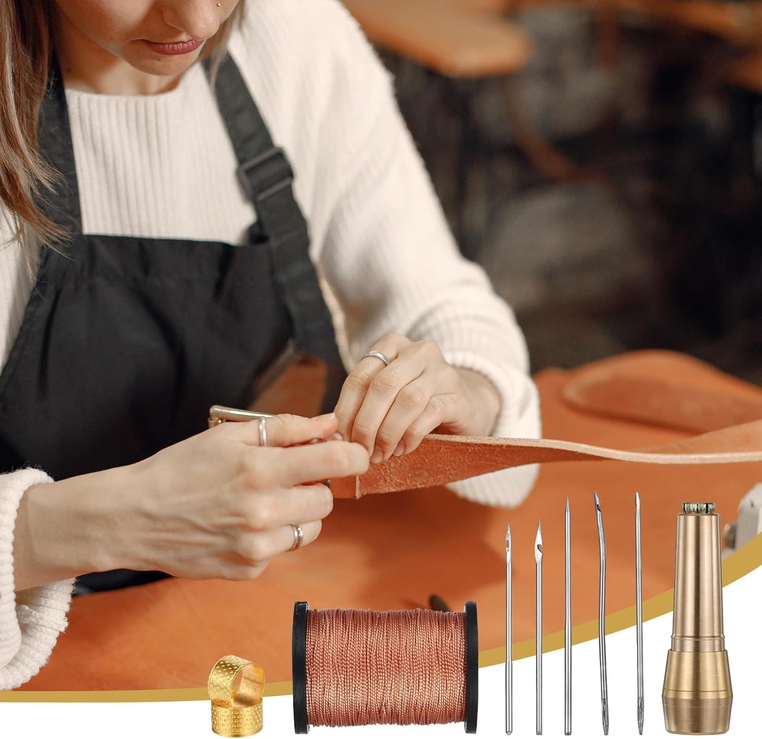 9pcs Canvas Leather Sewing Awl Needle with Copper Handle 45m Nylon Waxed Thread