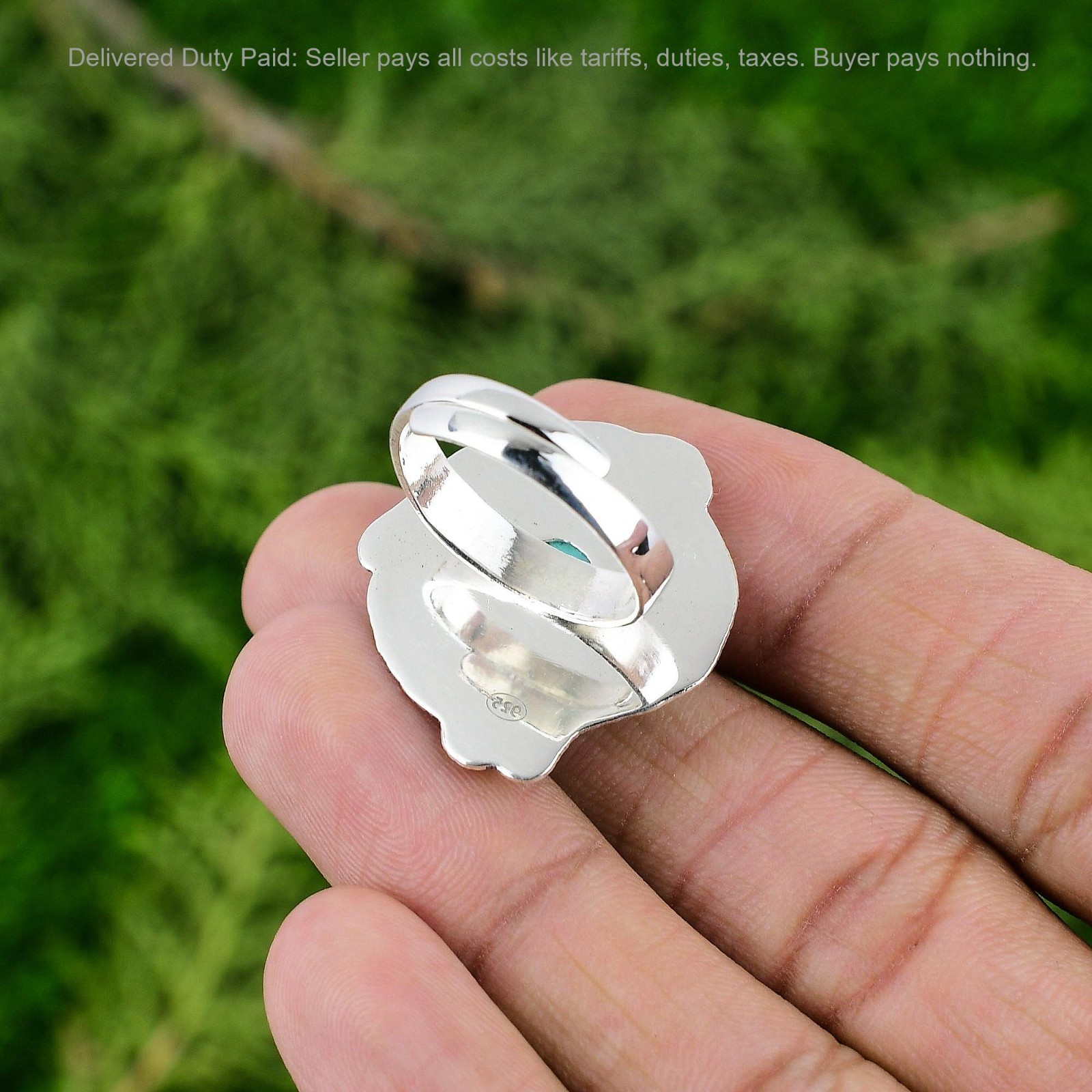 925 Sterling Silver Round Natural Tibetan Turquoise Promise Mother Ring Jewelry