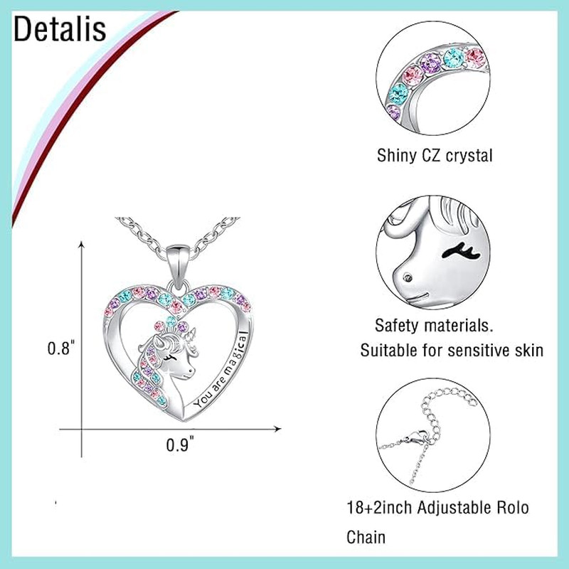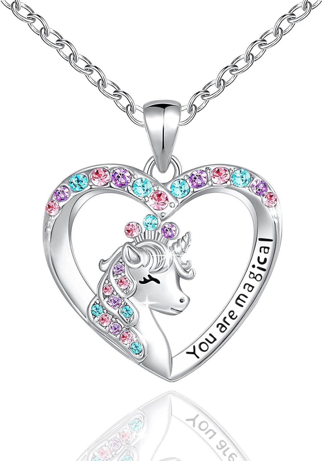 You Are Magical Unicorn Necklace for Girls Crystal Love Heart Pendant Necklaces