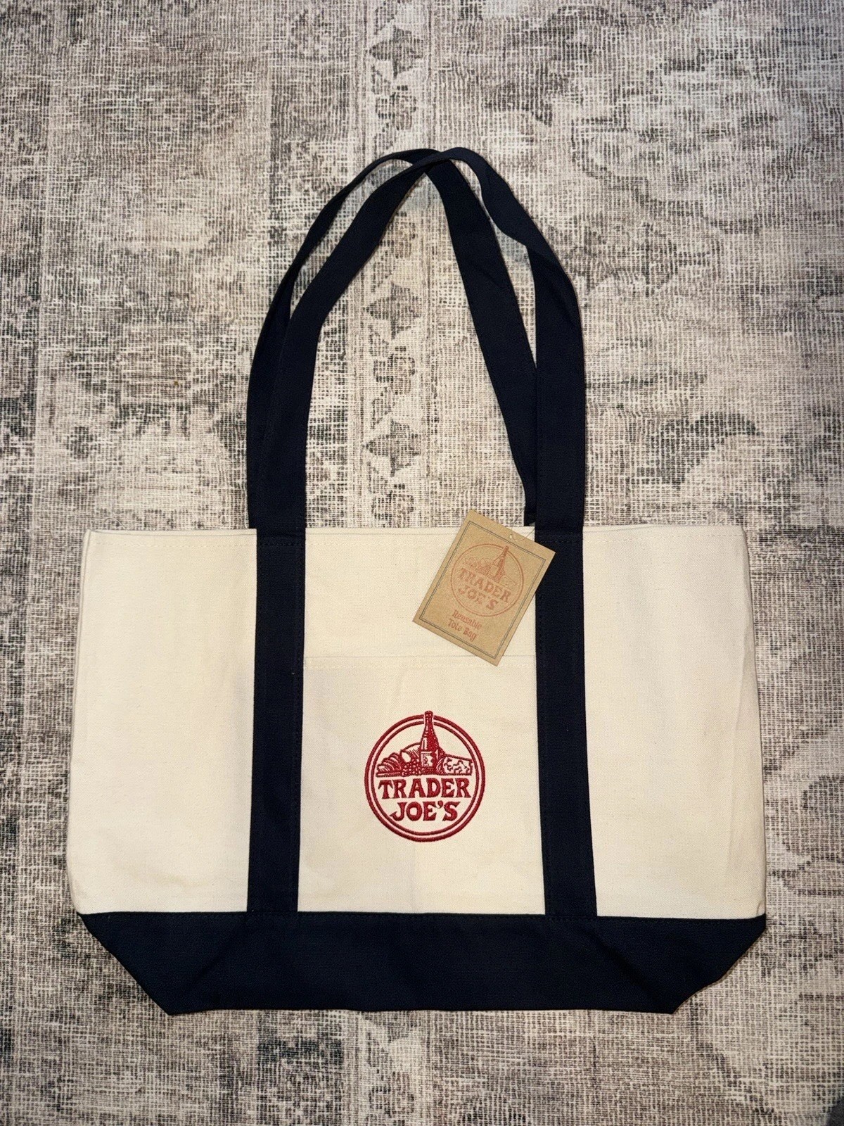 Trader Joe s Large Canvas Heavy Cotton Reusable Shopping Tote Bag Blue NWT