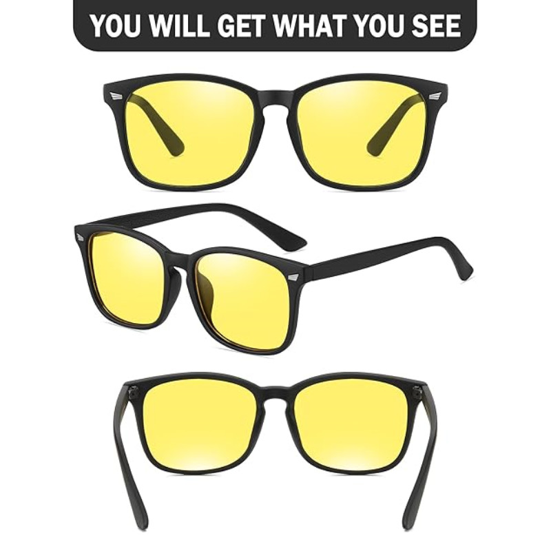 как выглядит Night Driving Glasses- Anti Glare Yellow Lens Night Vision,Blue Light Eyeglasses фото