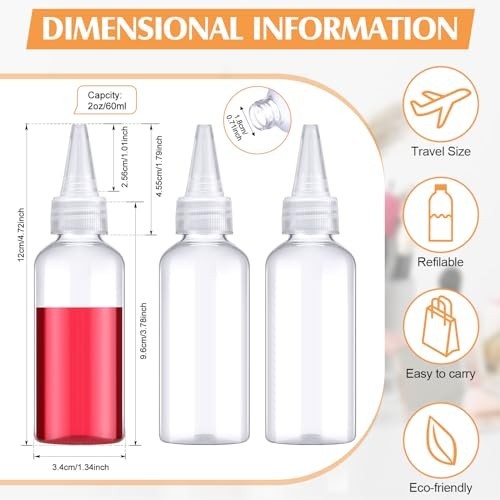 60 Pack 2 oz Plastic Applicator Bottles with Twist Top Caps - Refillable for Oil