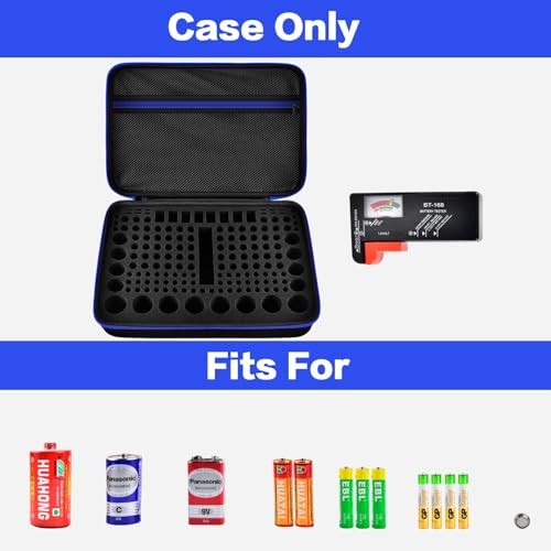 Storage Case Battery Organizer with Tester for 162 AA AAA 4A C D 9V 3V Blue