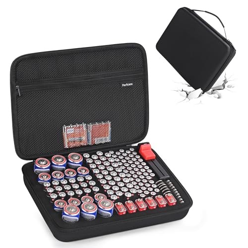 Battery Organizer Storage Case for AA AAA C D 9V, for 7 Batteries Variety BLACK