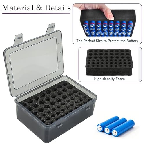 Battery Organizer, Portable Battery Box with Buffer Sponge, Transparent Gray