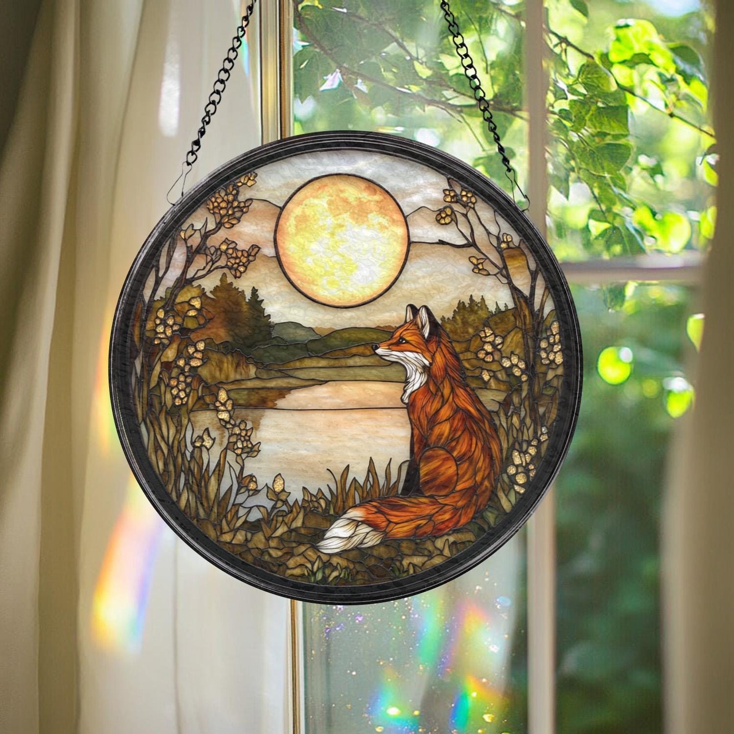 Fox Glass Suncatcher: Woodland Nursery Decor, Handmade Ornament