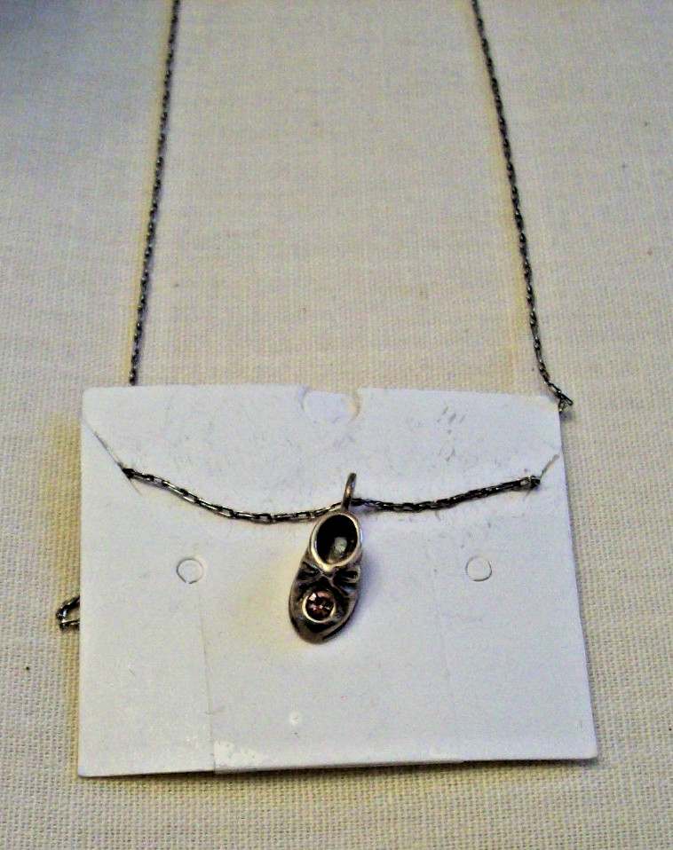 Sterling Child's Slipper Necklace with pink stone in Baby coach box