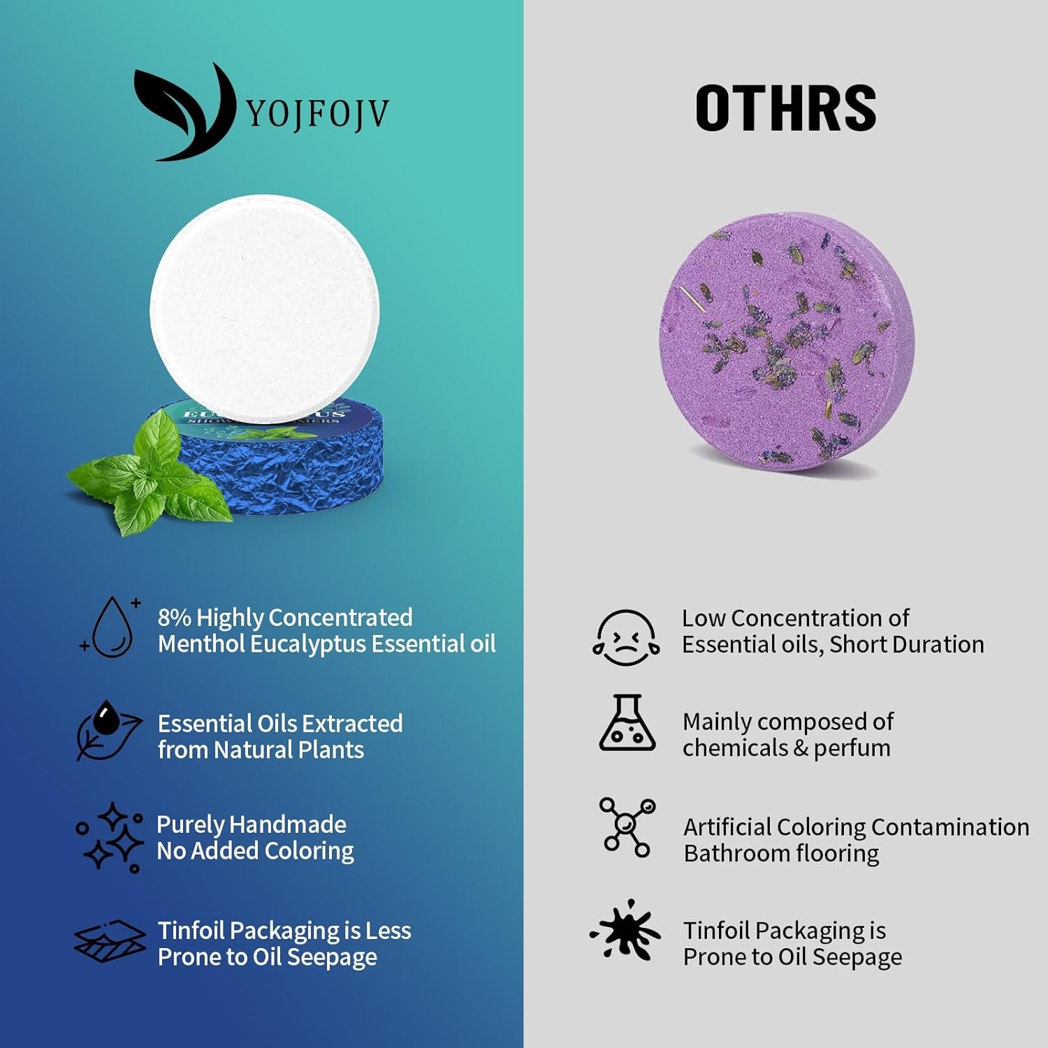 Shower Steamers Aromatherapy, 6 Pack Shower Bombs Organic with Menthol Eucalyp