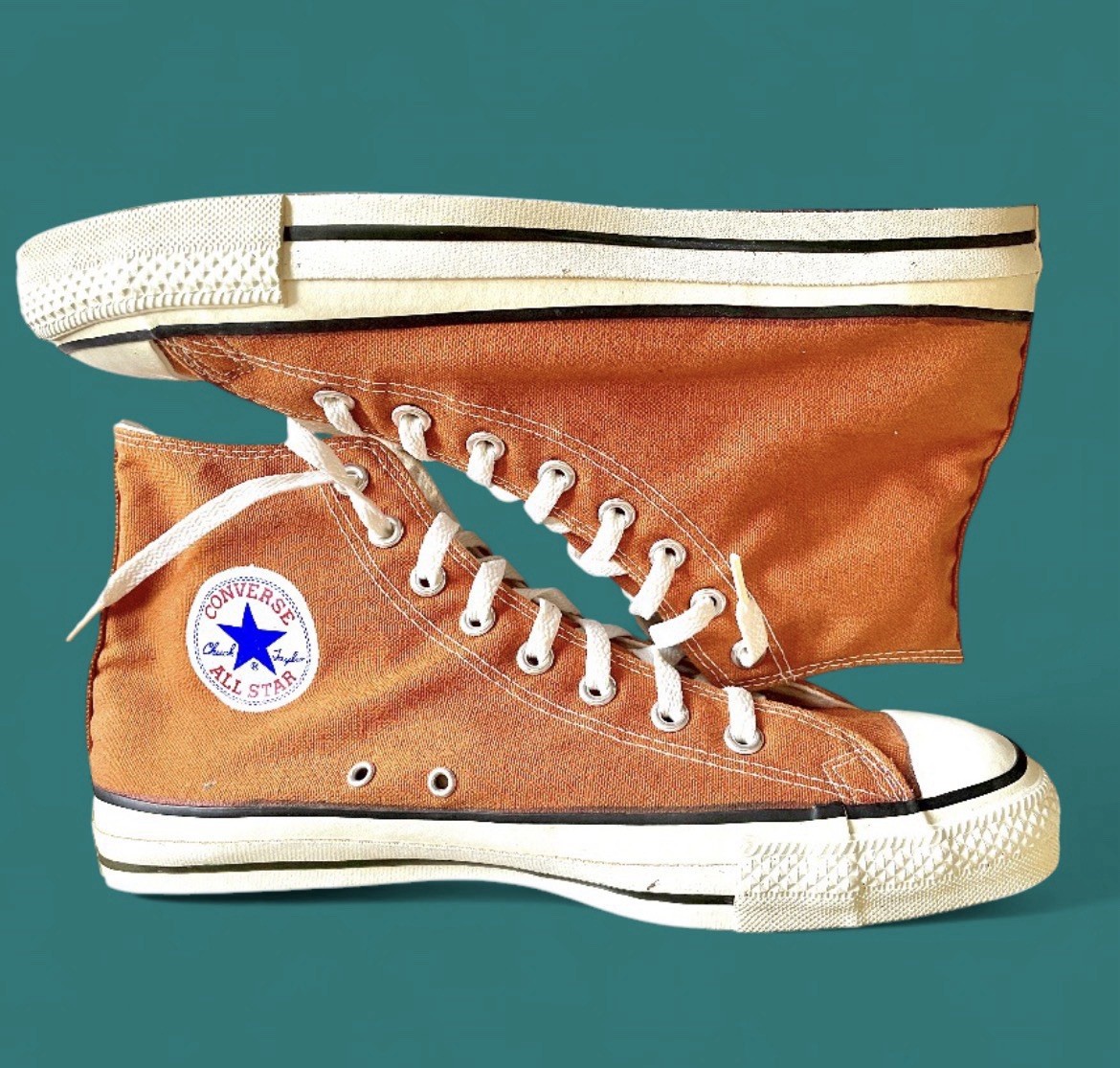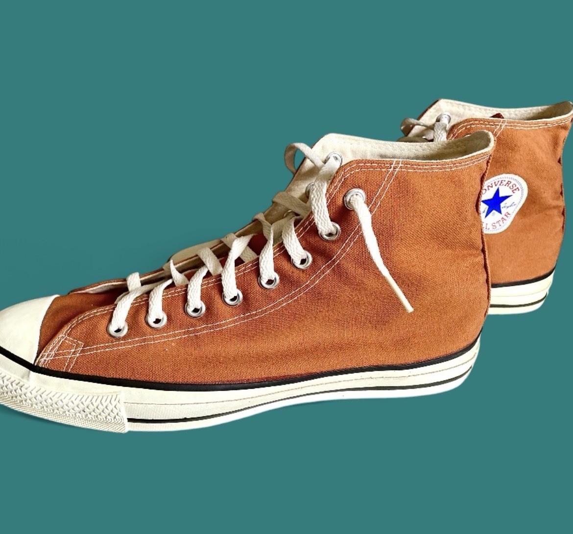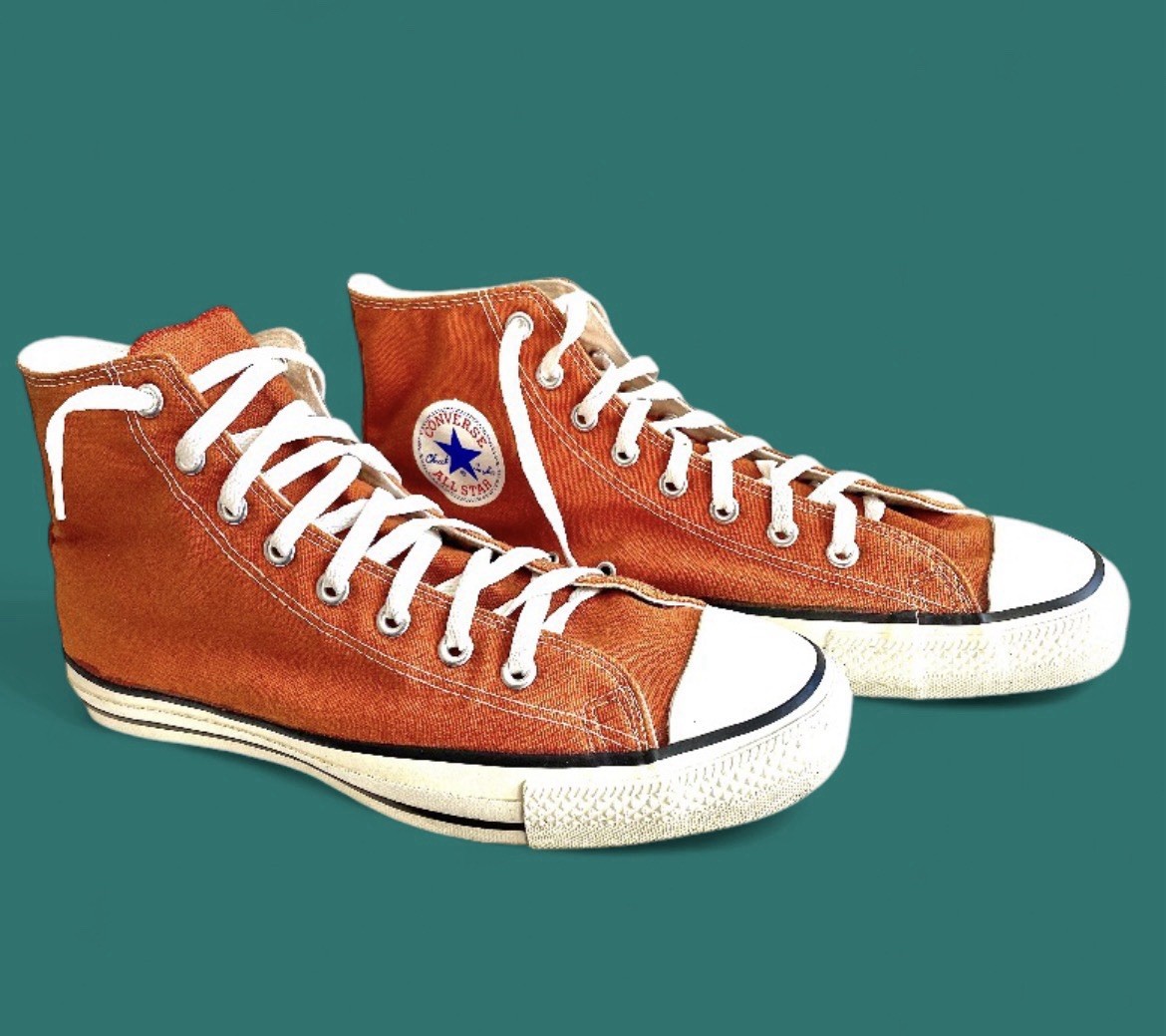Vintage 1980s Converse All Star Made USA Orange High Top Sneakers 11.5 RARE