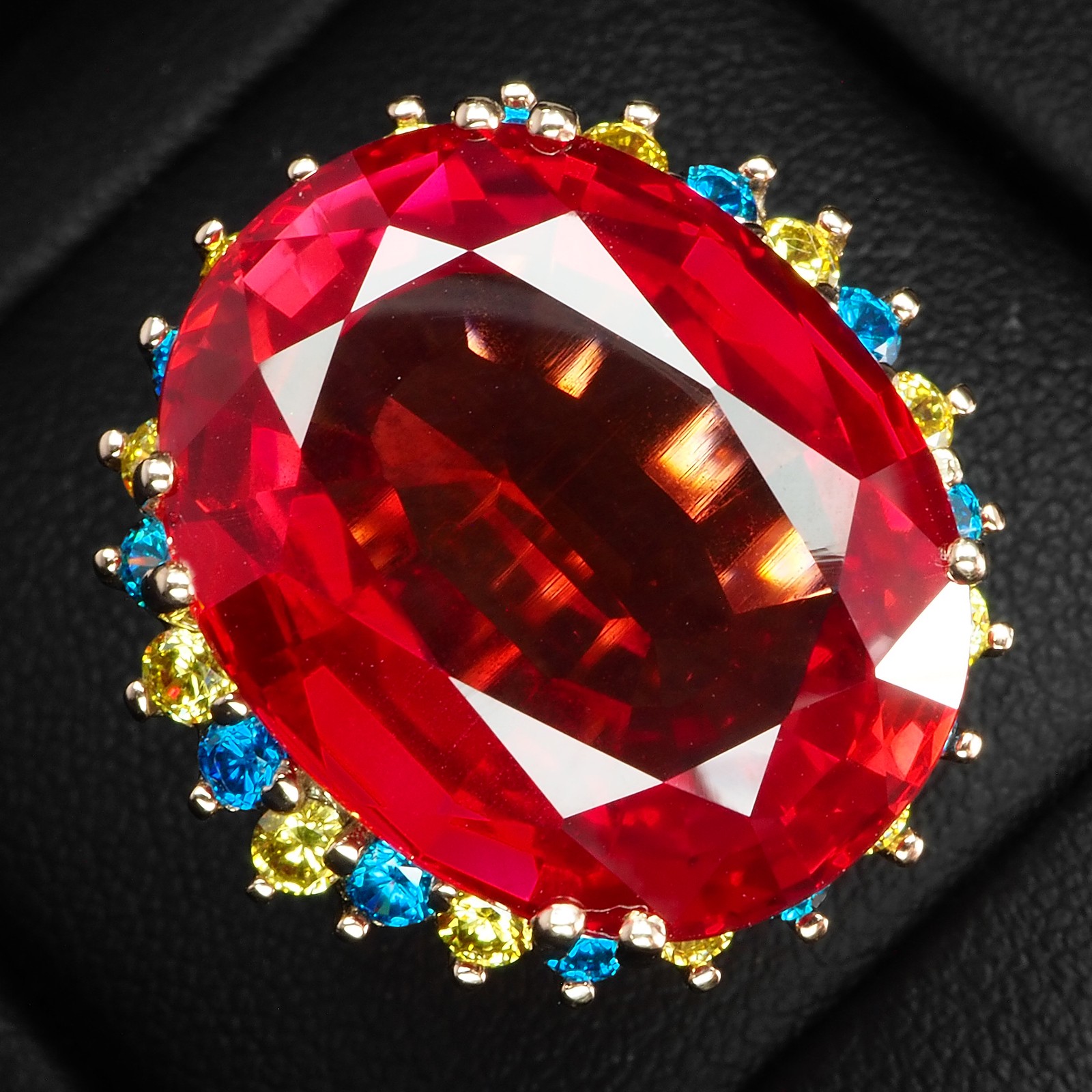 как выглядит SUNSET ORANGE SAPPHIRE OVAL 24.05CT 925 STERLING SILVER HANDMADE GIFTS RINGS фото