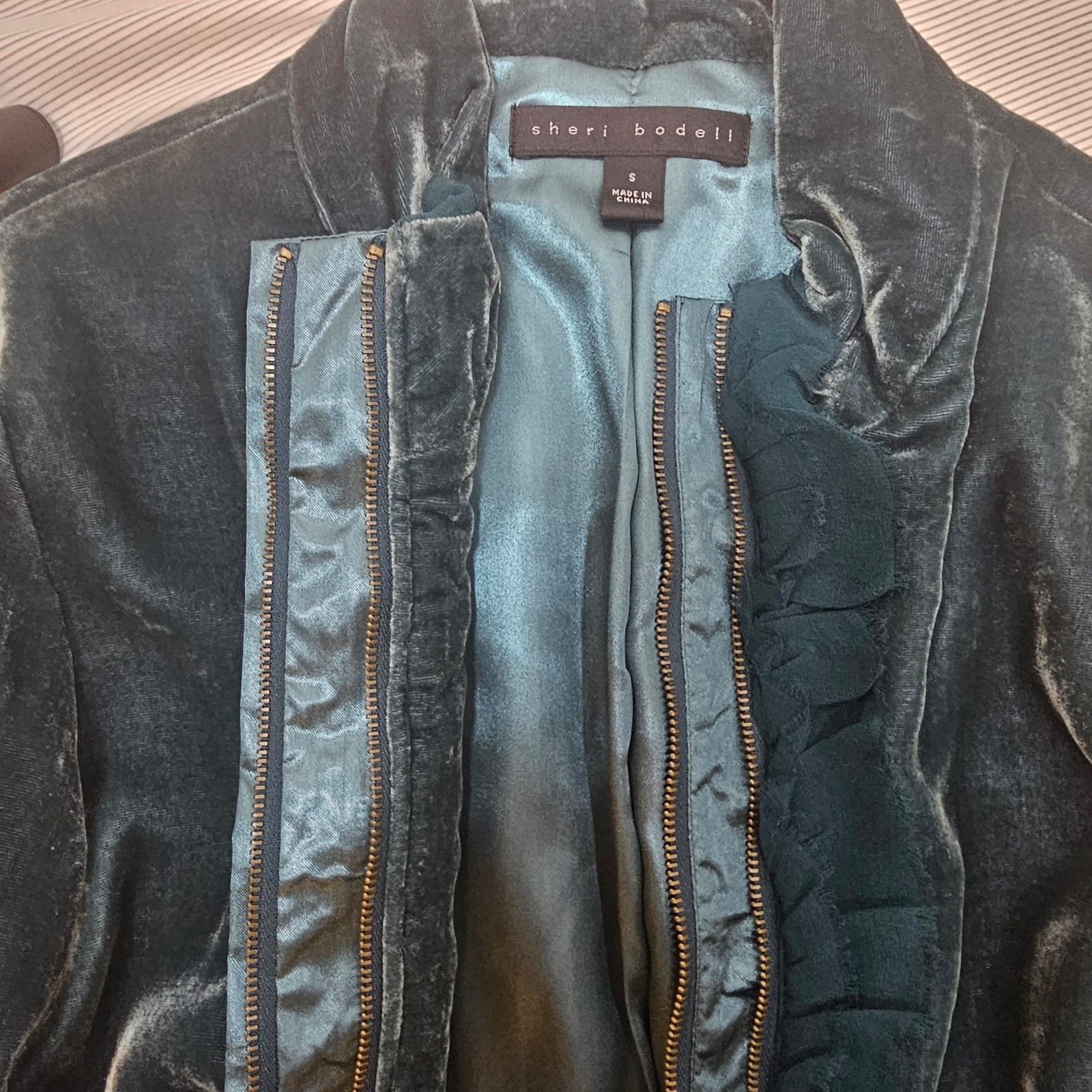 как выглядит Vintage Sheri Bodell Velvet Jacket Teal Size Small фото
