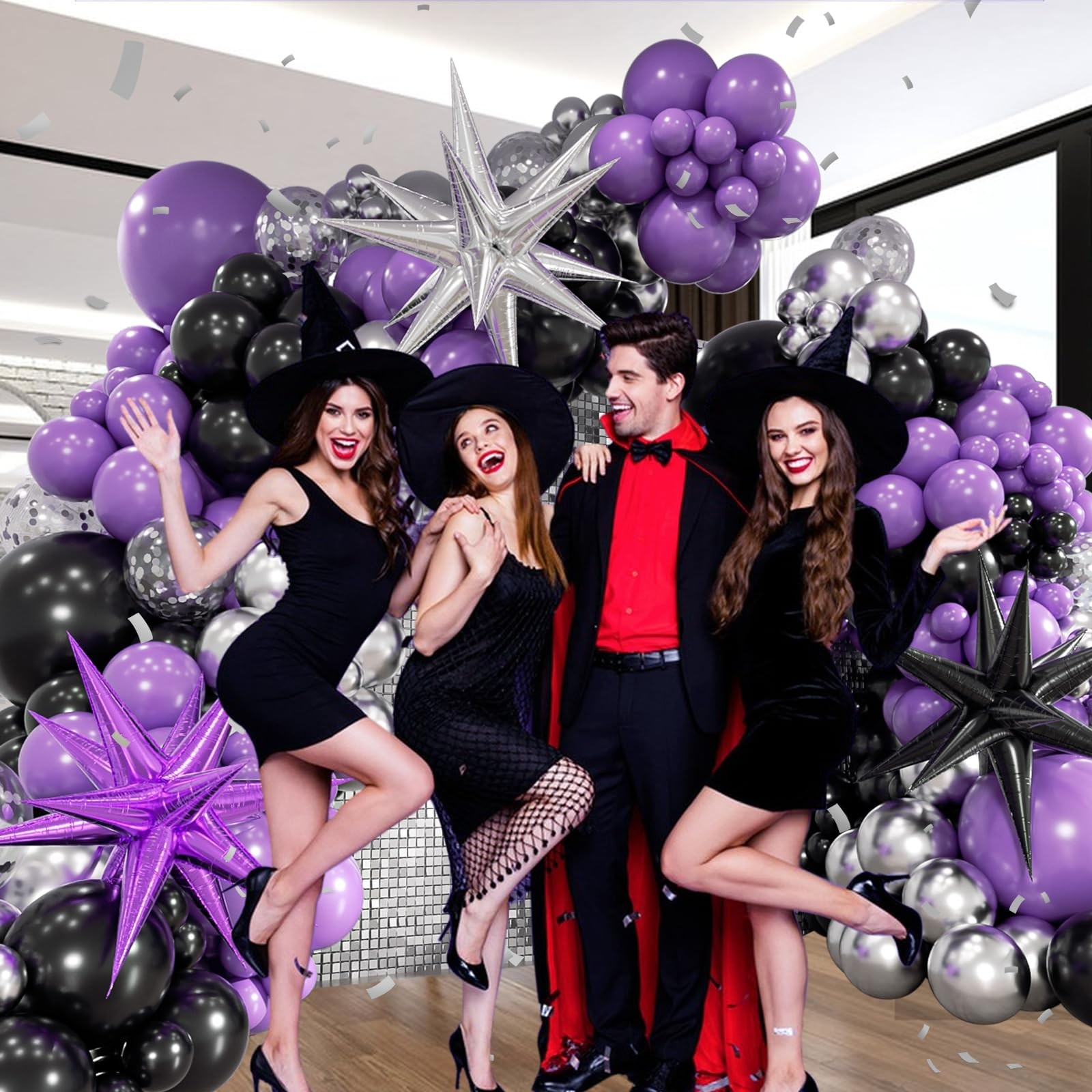 Balloon Arch Kit with Purple Black Metallic Silver Confetti Foil Balloons