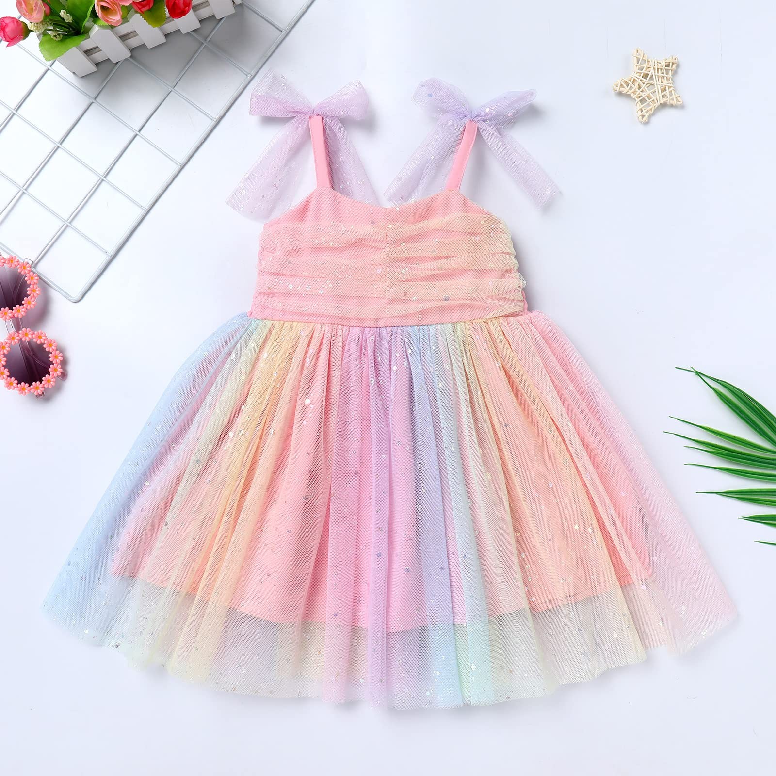 Pastel Rainbow First Birthday Outfit Girl Baby Girl Sequin Tulle Dress Stars ...