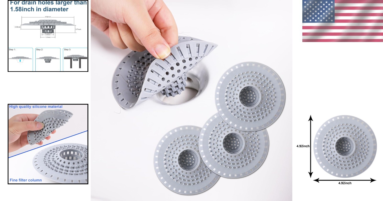 как выглядит Bathtub Drain Hair Catcher, Silicone Tub Hair Catcher Drain Protector Strainer, фото
