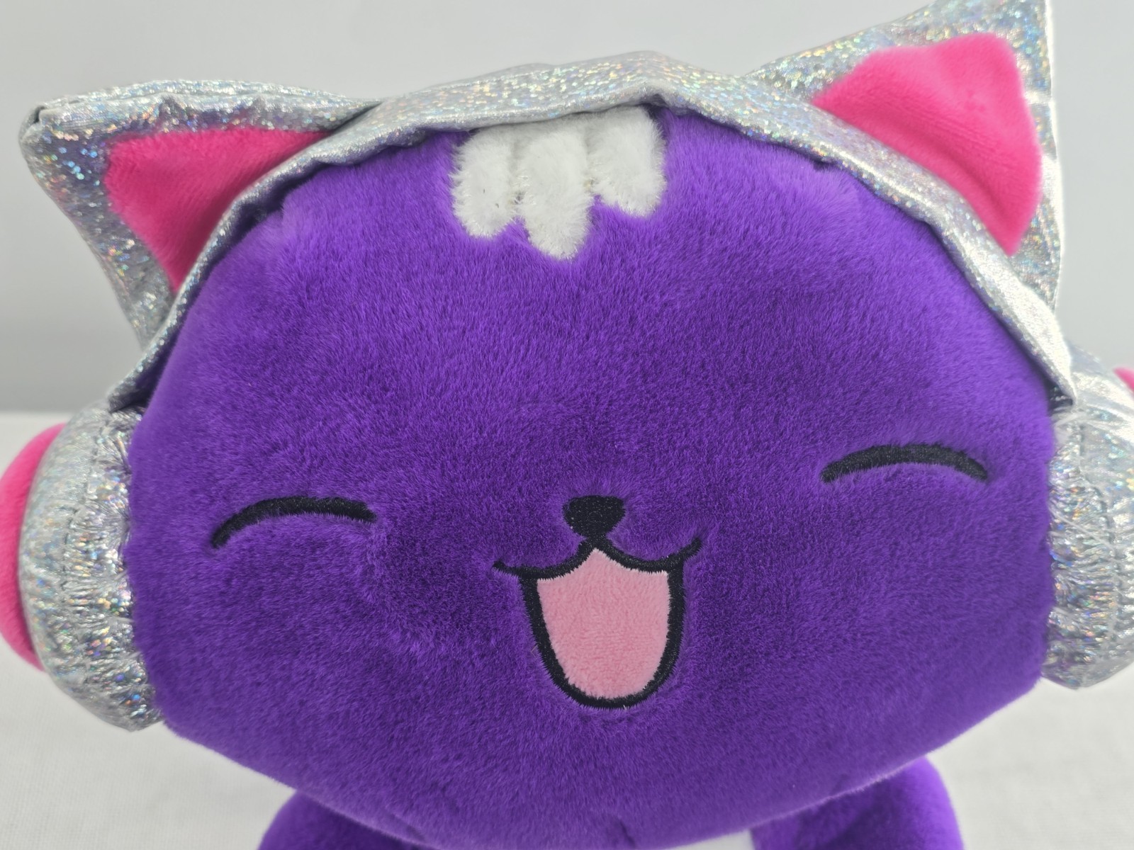как выглядит 2022 FAO Schwarz Purple Glow Brights with Lights DJ Cat 11" Plush Toy WORKS фото