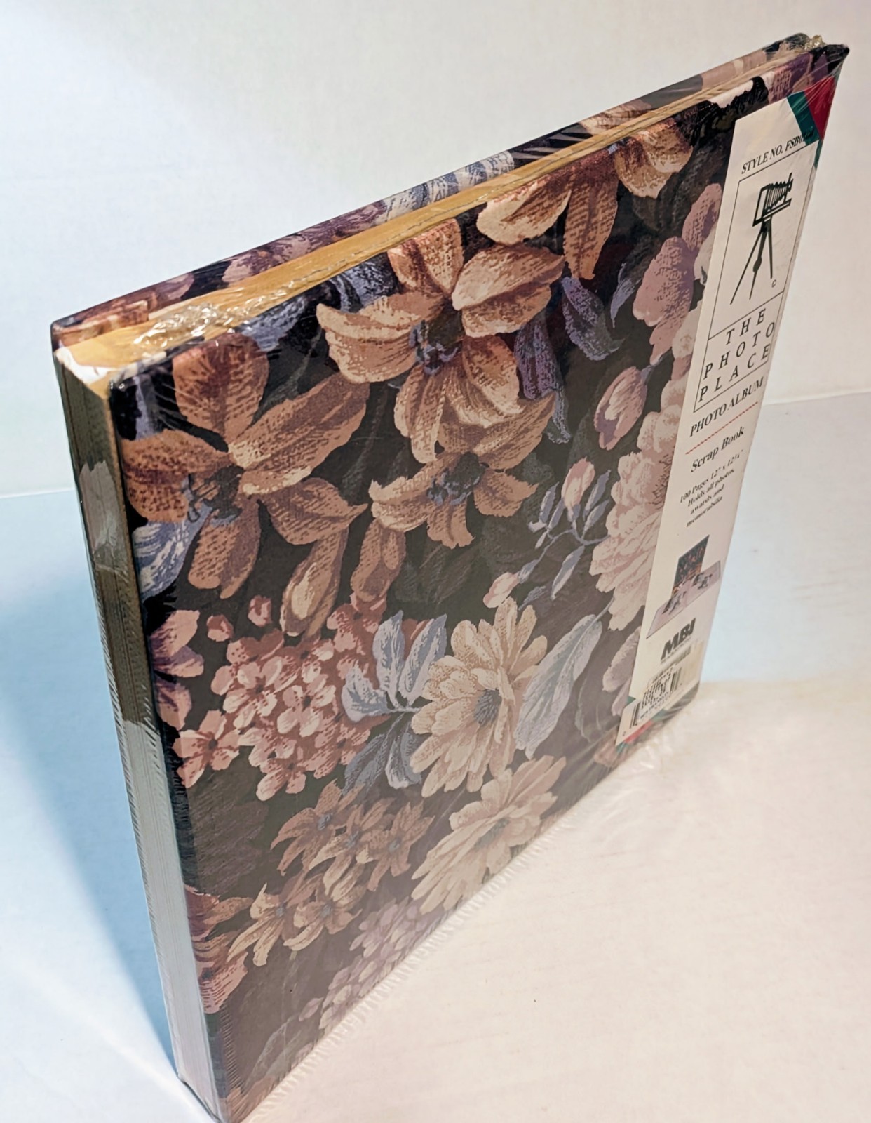 как выглядит The Photo Place Photo Album Scrapbook 100 Pages 12"x12 3/4" Black w/ Flowers NOS фото