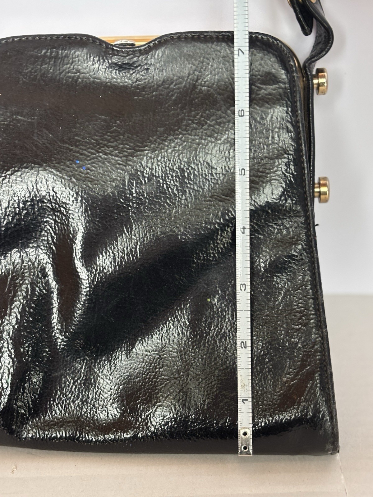 как выглядит Vtg Triangle New York 50-60s Purse Handbag Black Leather фото