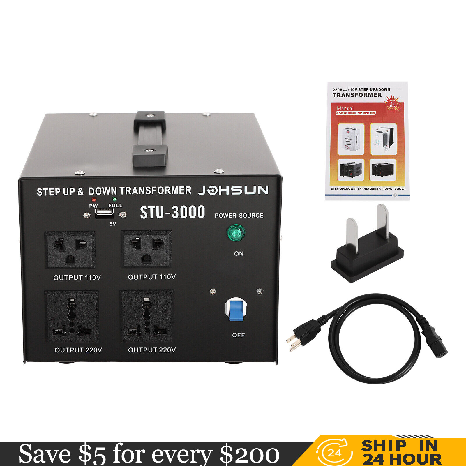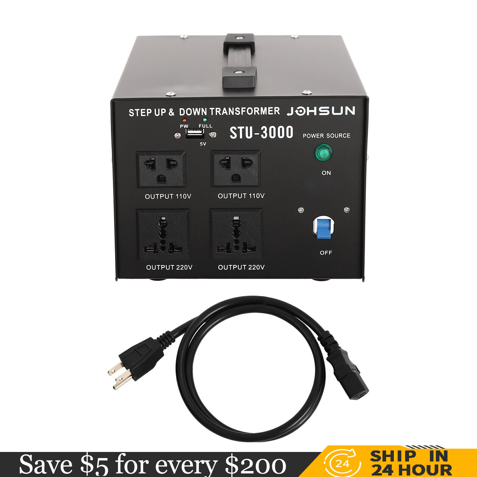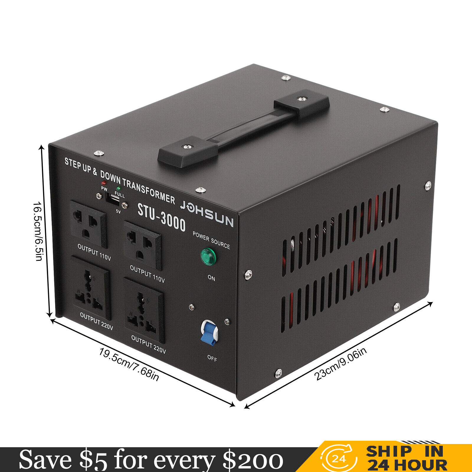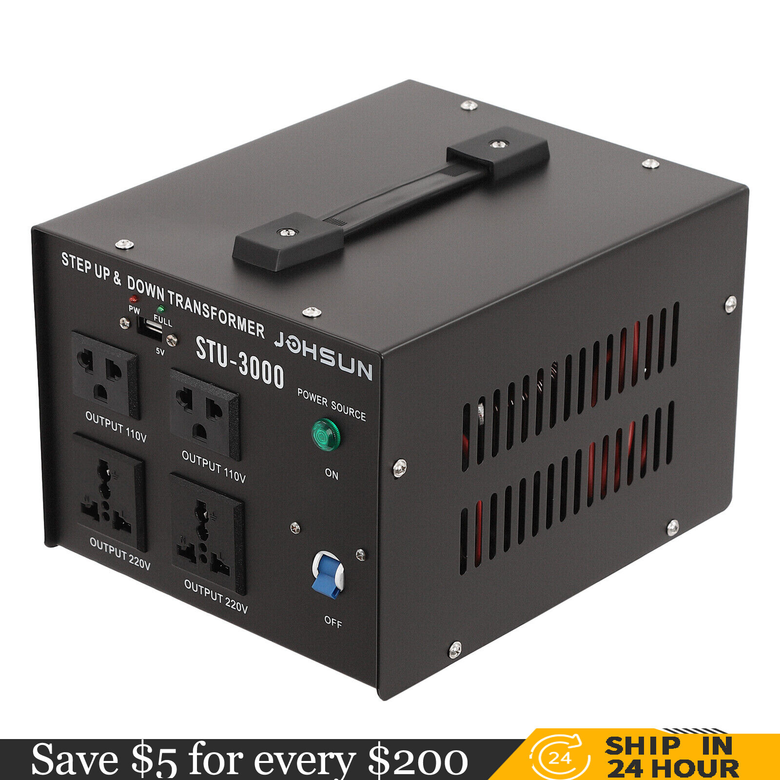 3000 Watt Voltage Converter Power Transformer Step Up/Down 110V- 220V Heavy Duty