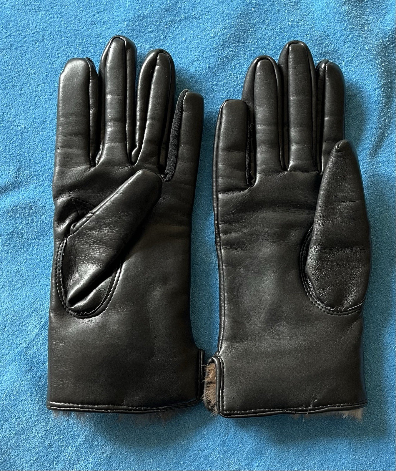 как выглядит 2 Pair Vintage Black Faux Leather Womens Gloves Size B Fur Fleece Lined фото