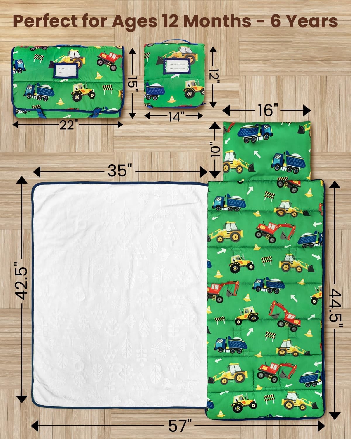 Toddler Nap Mat with Removable Pillow and Flannel Blanket, Portable Sleep Bag...
