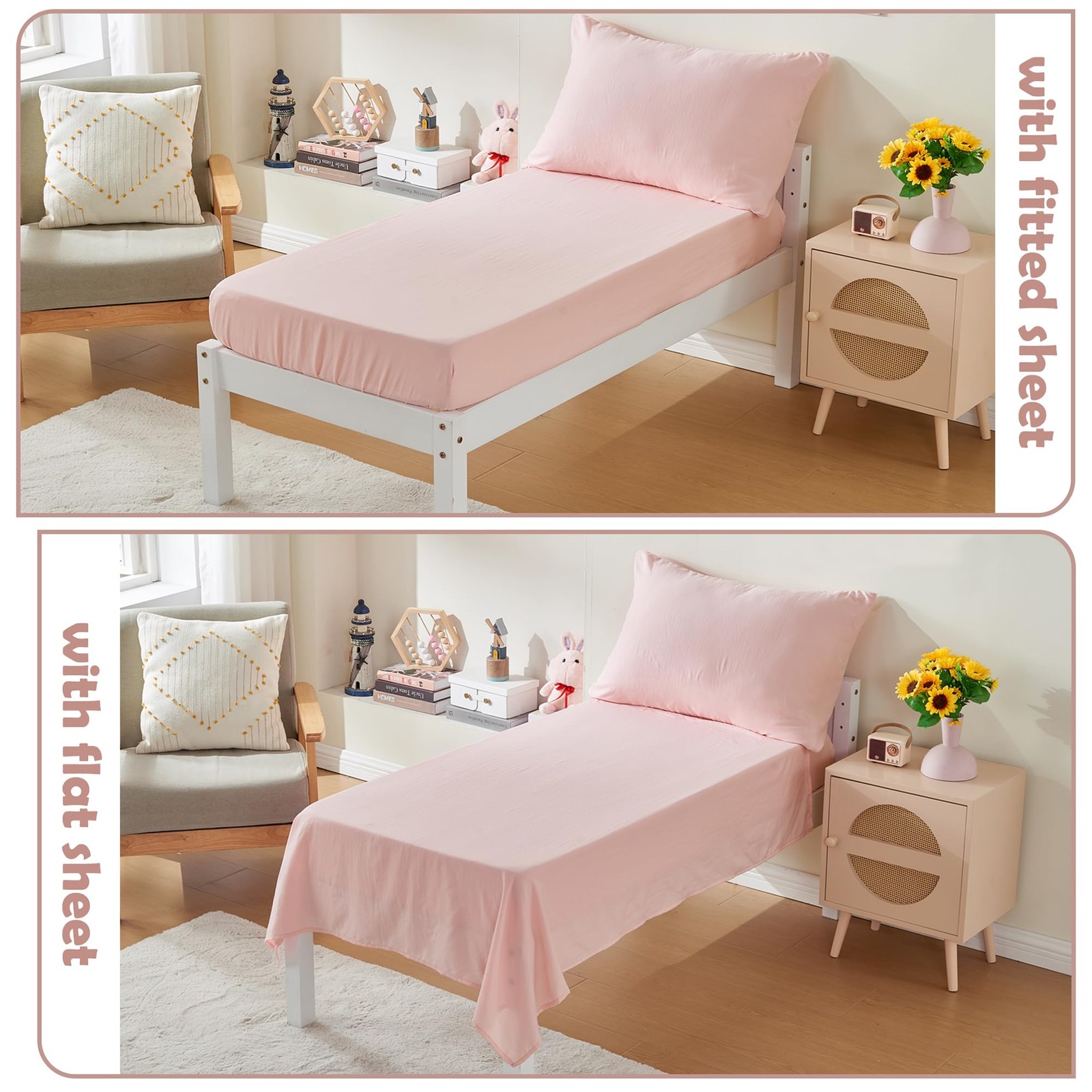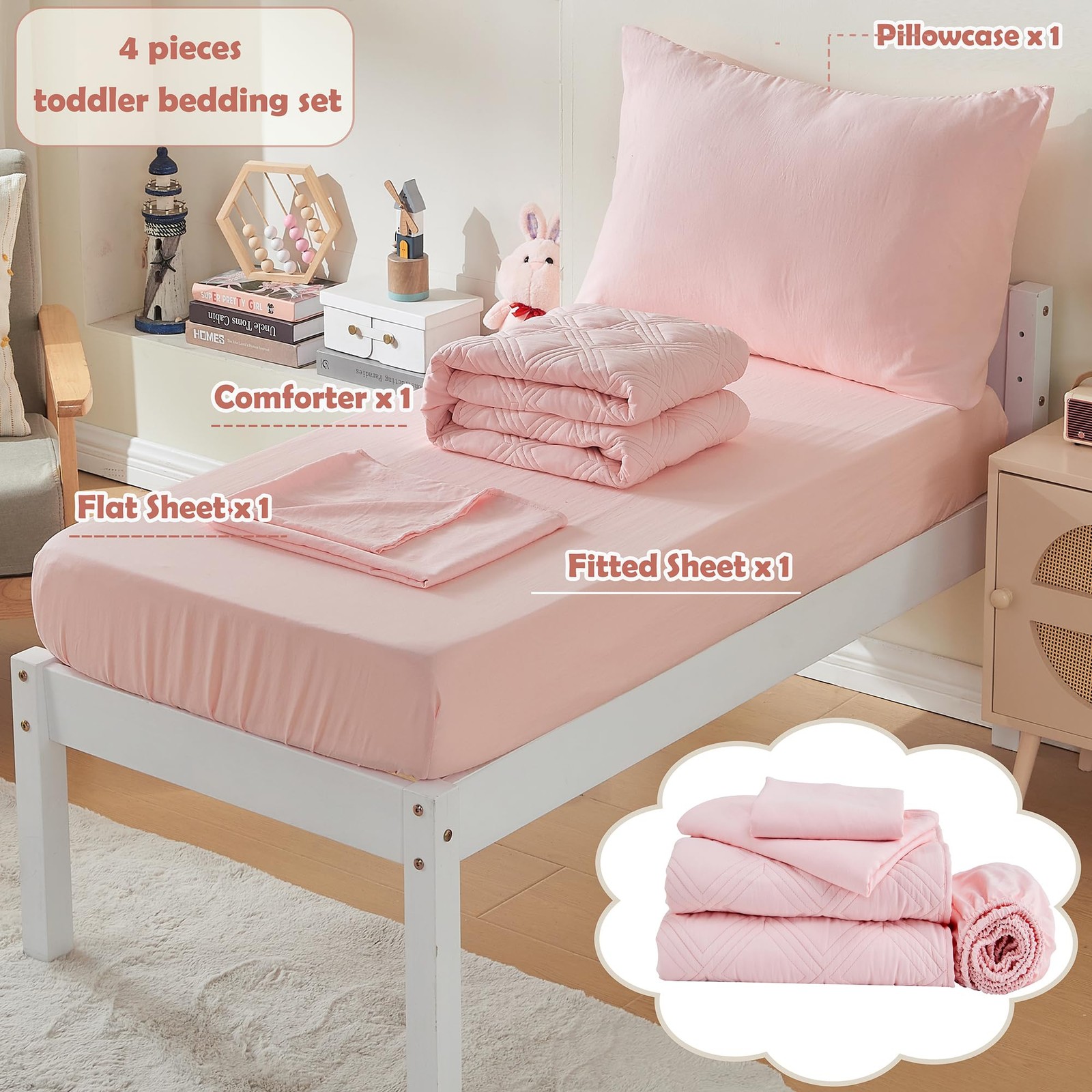 4 Piece Toddler Bedding Set for Girls Pink Geometric Stitched Soft Microfiber...