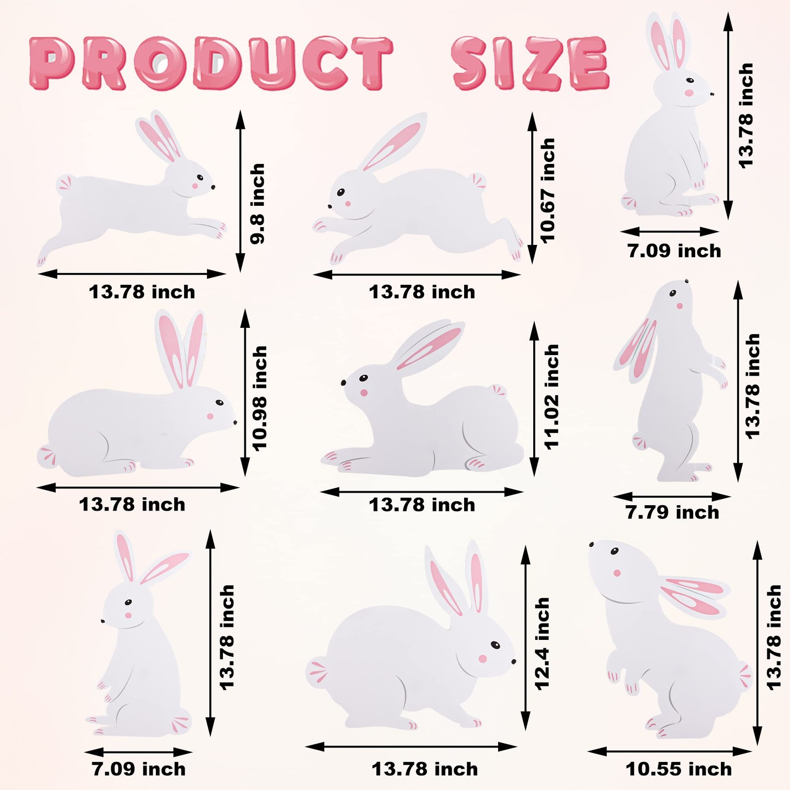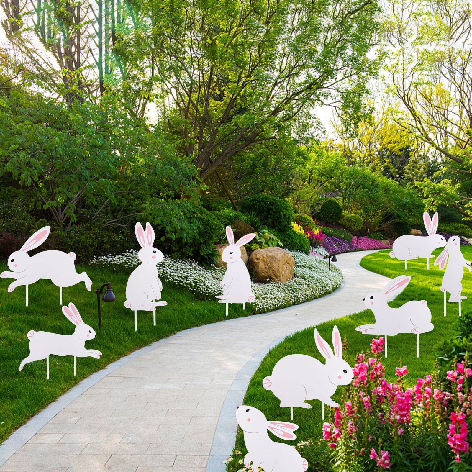 Included Components: 9 Easter Bunny Yard Signs, 18 Stakes
