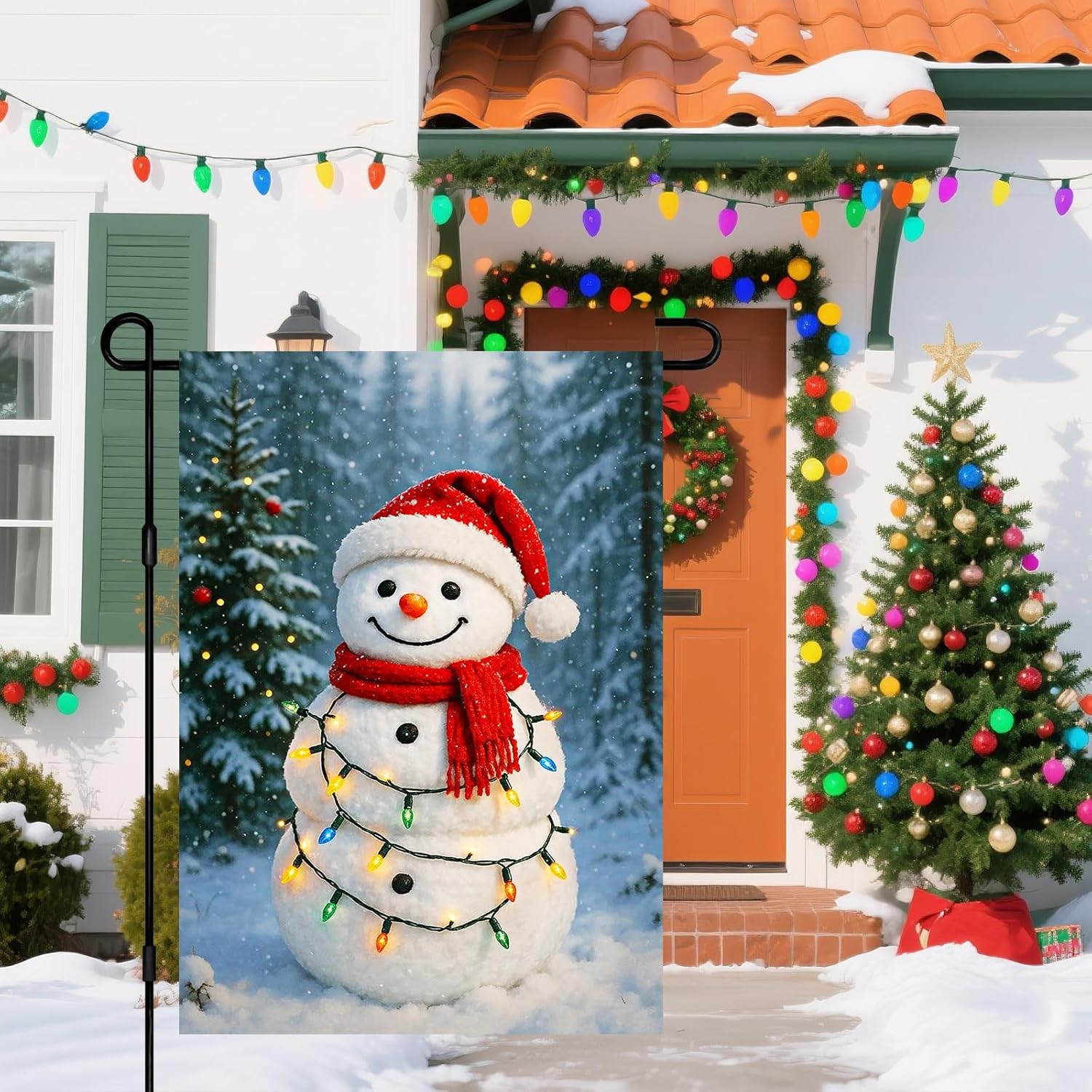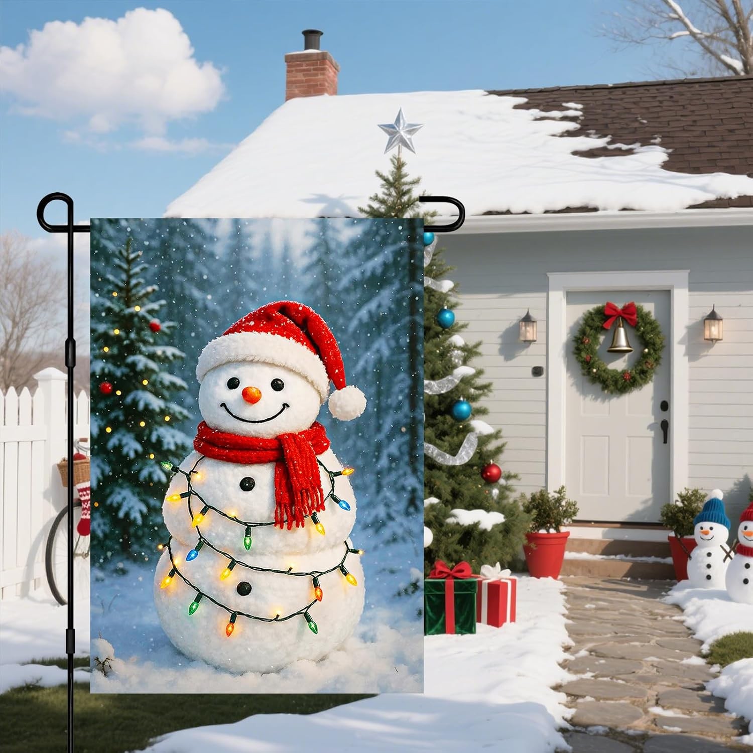 IVN Merry Christmas Snowman Garden Flag 12x18 Inch Double Sided Couple Gift Tree