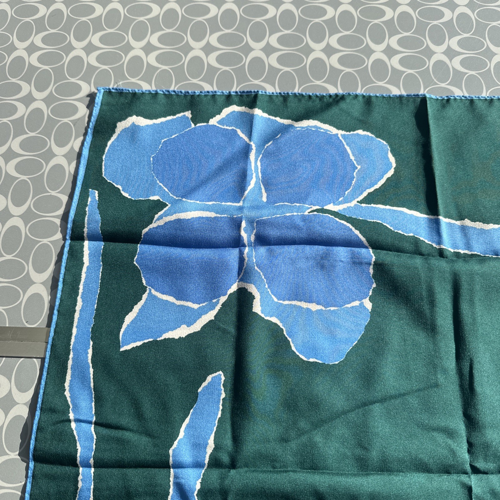 Vtg Vera Neumann Scarf Polyester 20 Square Green Blue Mod Retro Flowers Floral