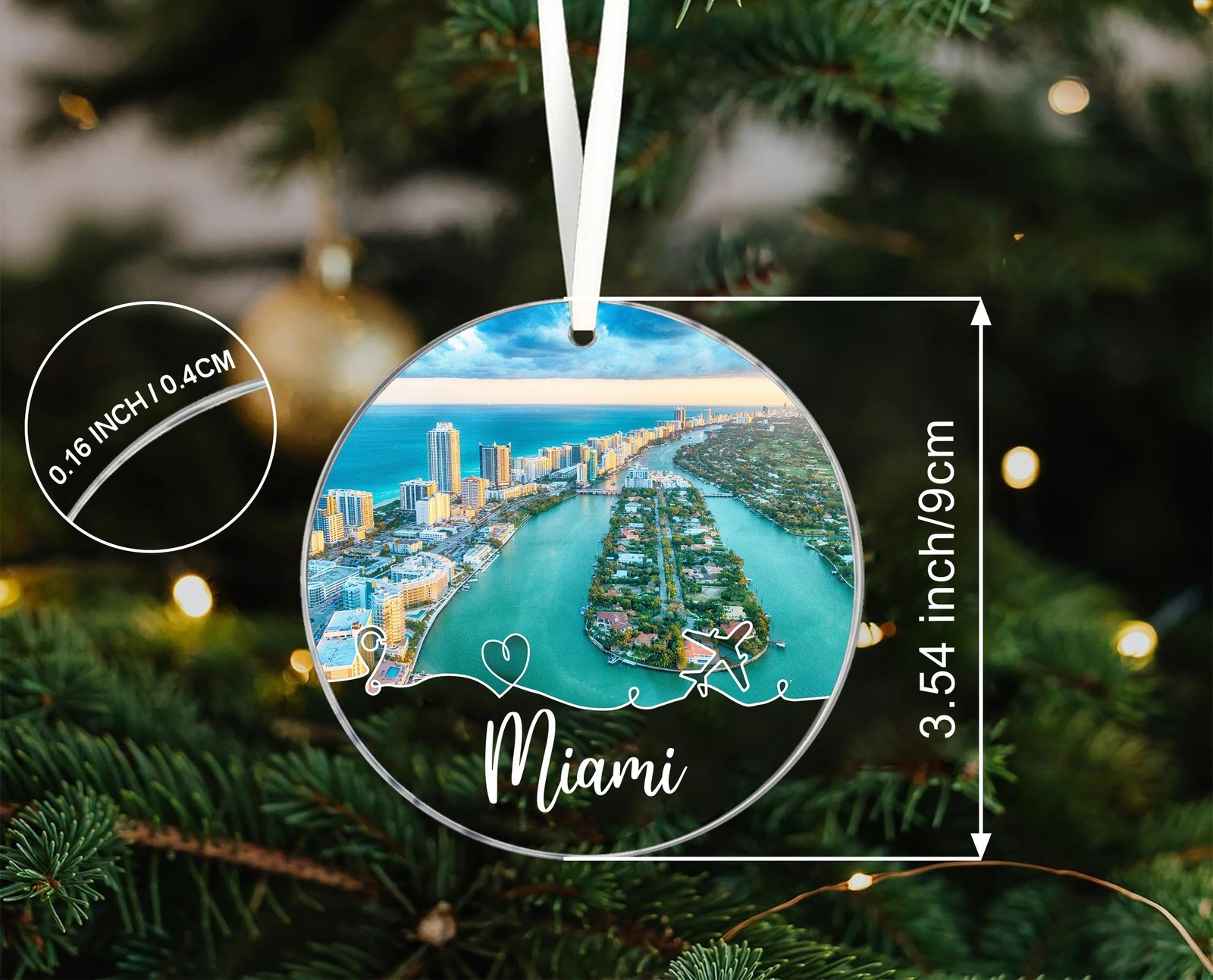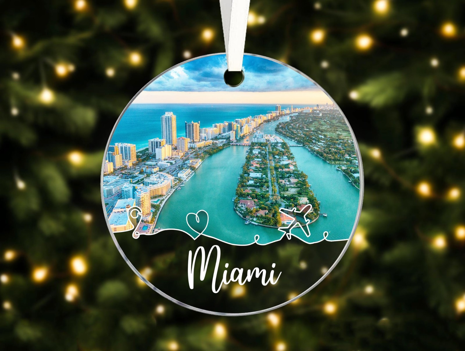 Miami City Travel Souvenirs Christmas Ornament Acrylic, New City Gift, New Ho...